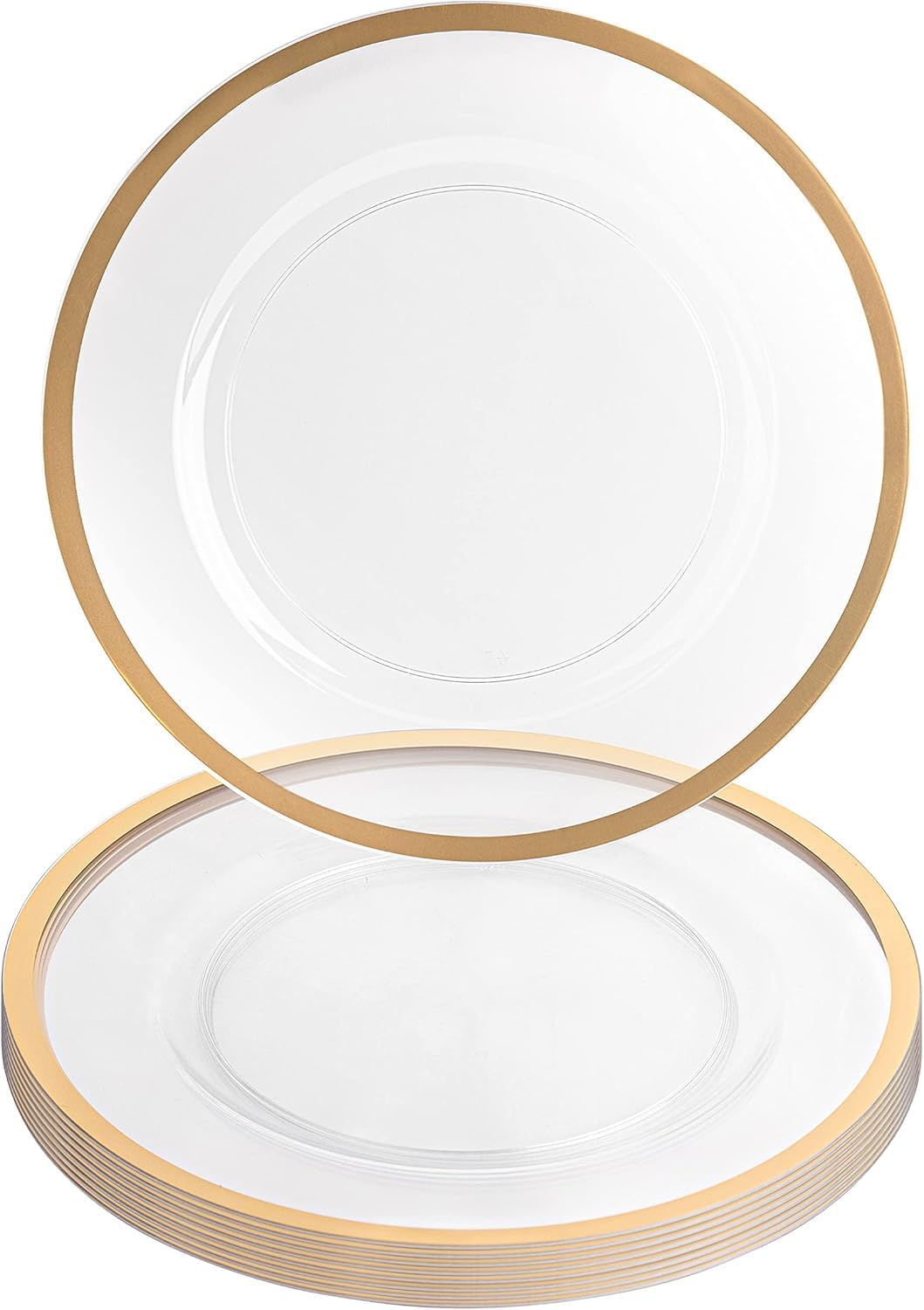 PARTY BARGAINS 13-Inch Charger Plates – 8 Pack, Clear Gold Rim, Heavy-Duty Disposable Chargers for Elegant Dining – Ideal for Weddings and Formal Events