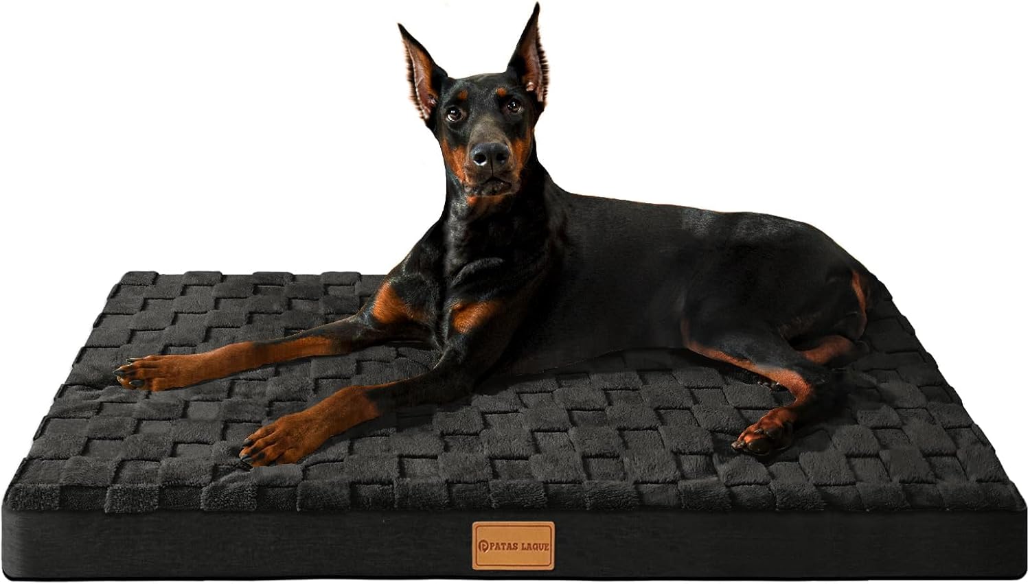 Patas Lague Orthopedic Dog Bed Large Sized Dog 36”X24”, Waterproof Soft Comfortable Egg Crate Foam Large Pet Beds Crate Mat with Removable Washable Cover and Nonskid Bottom, Black