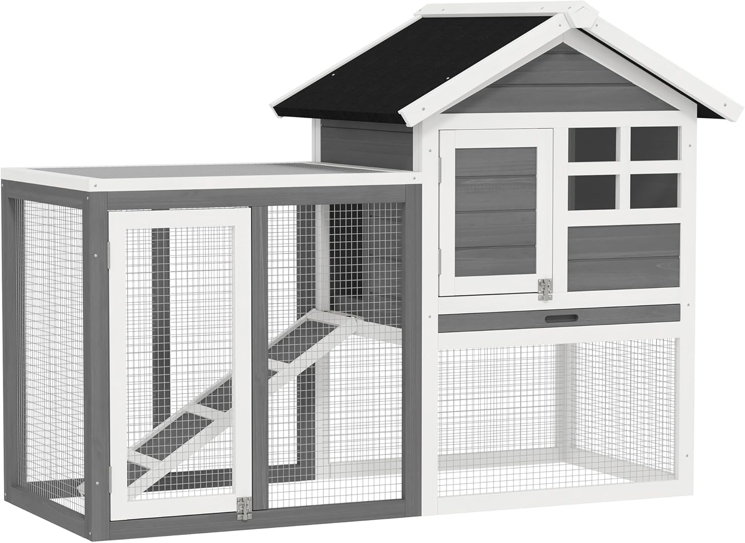 - Durable Material: Made of solid fir wood and a composite asphalt roof, this bunny hutch will keep your furry friends dry for years to come.