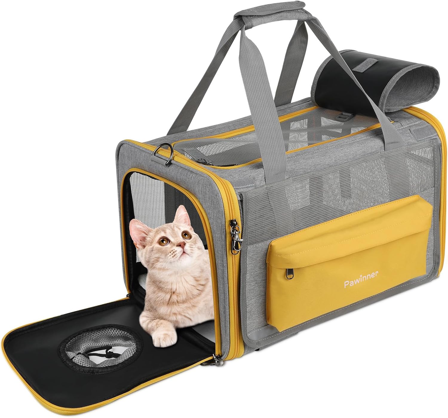 Pawinner Cat Carriers, 17.7″x13″x13″ Collapsible Pets Travel Carriers Dog Carrier Pet Carrier, Waterproof Airline Approved Soft Sided, Car Travel Portable Bag for Big Cats/Small Dogs