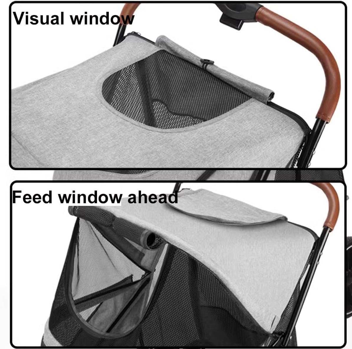 - Durable & Breathable Construction:Built for lasting protection. The sturdy steel frame provides exceptional support while maintaining a lightweight profile. Covered with 600D Oxford fabric and high-density breathable mesh, the stroller offers wind protection, warmth, and excellent ventilation, creating a safe, comfortable, and well-ventilated mobile space for your beloved pet.