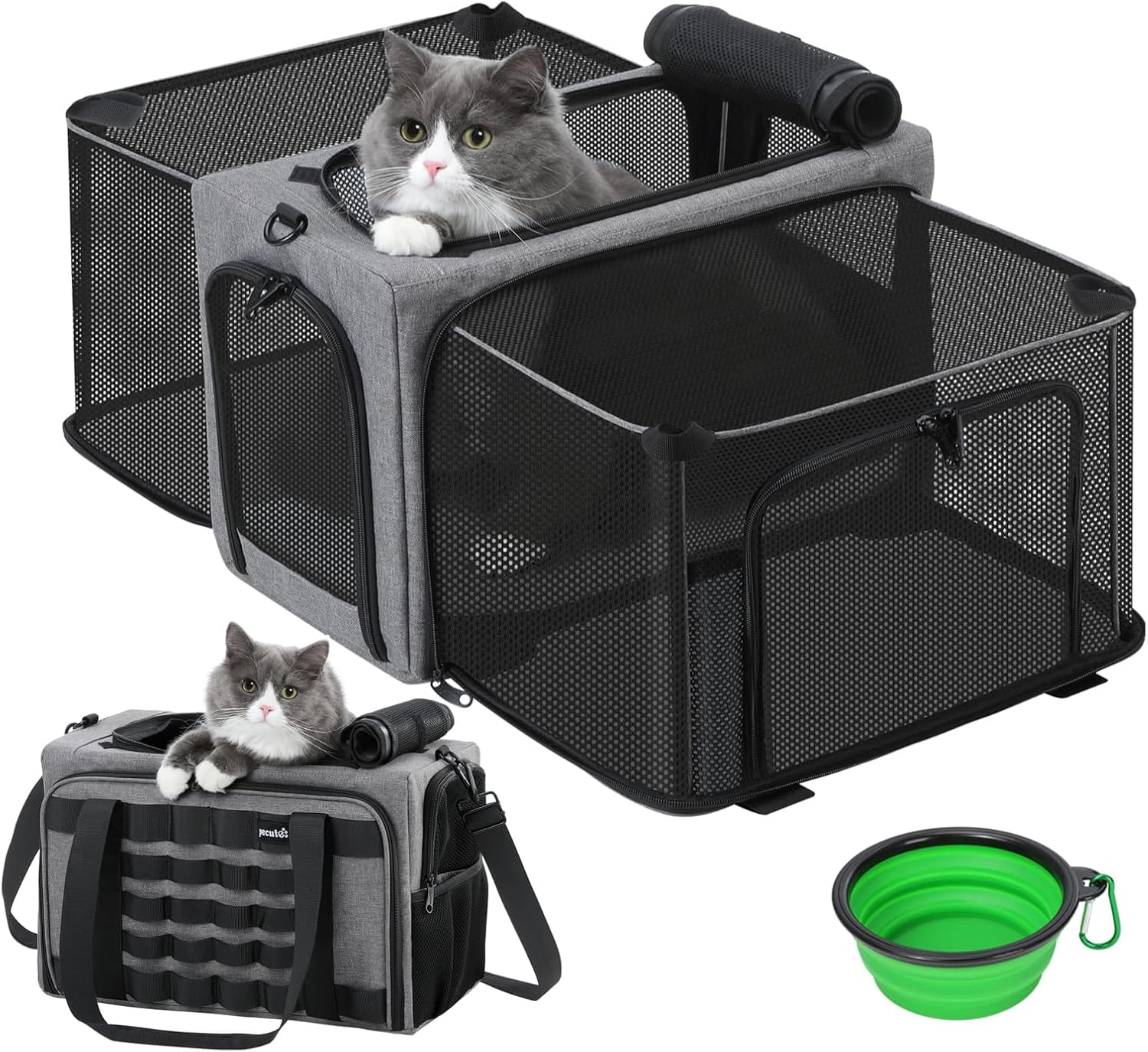 Pecute Cat Carrier Expandable, Airline Approved Cat Soft-Sided Carriers, Breathable Pet Carriers up to 5kg/12lbs, Collapsible Cat Bag Carrier Great for Travel, Outdoor, Hiking, Camping, Gray