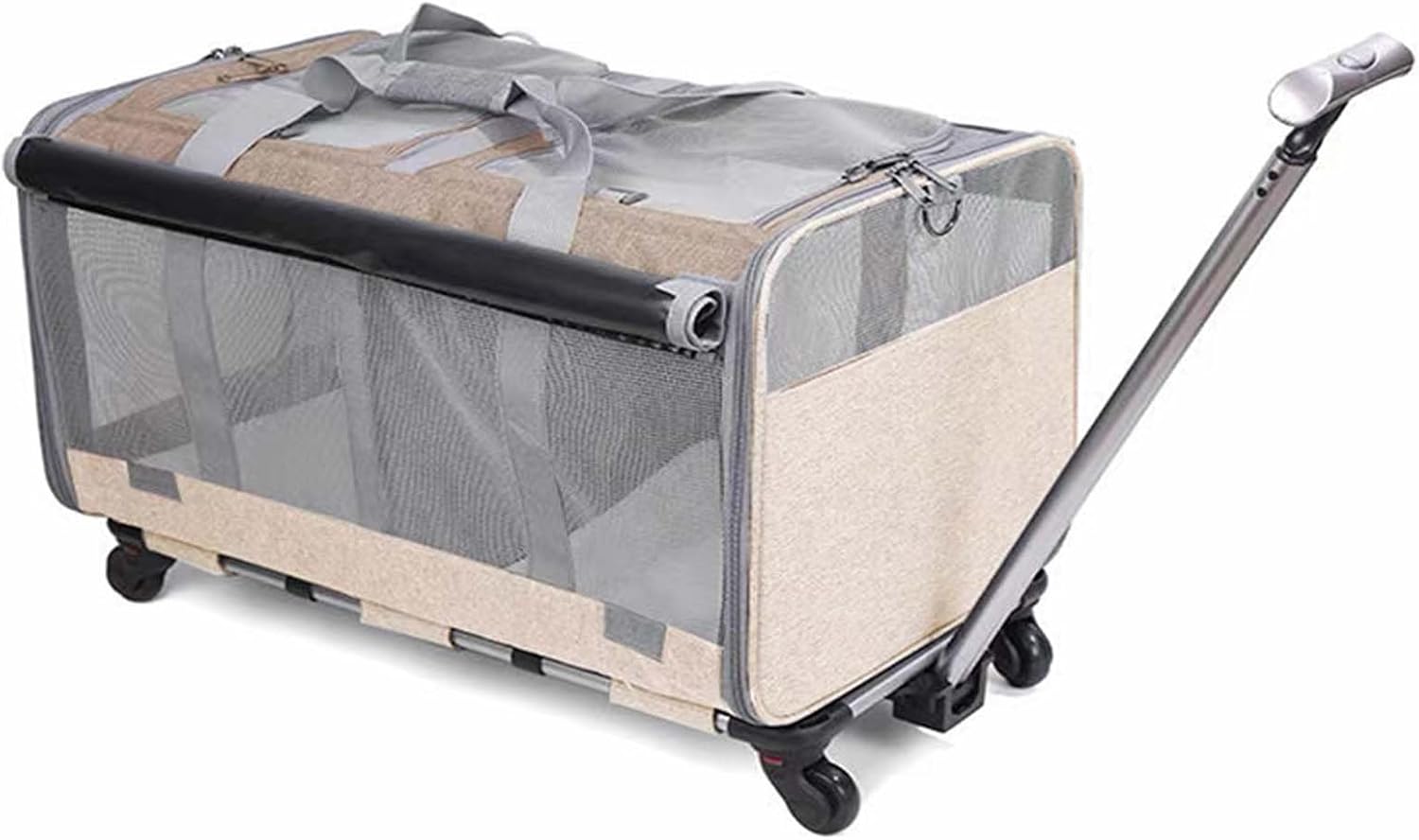 Pet Carrier with 4 Wheels for 2 Small Pets,Double-Compartment Rolling Wheeled Travel Cats Carrier with Telescopic Handle,Ventilated Design,Perfect for Traveling/Walking/Camping (Khaki)