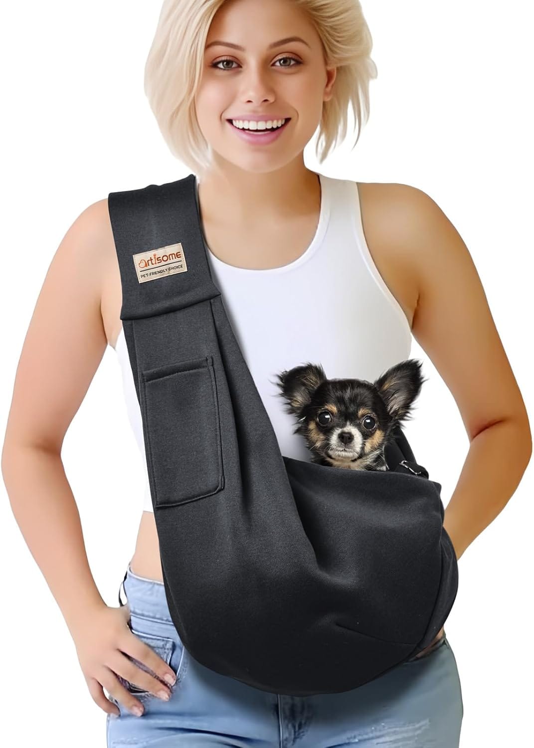 - WIDE REVERSIBLE CAT DOG CARRIER : Pet slings should be not only functional for carrying pet, but also super-stylish.Artisome reversible sling is a great plus allowing you have two styles to match your clothes well and making you become the most fashionable kangaroo mama during daily walking or weekend adventurepplication.Artisome small dog carrier sling helps you to take your pets into malls,grocery stores, subways, parks, and daily walk or trips .