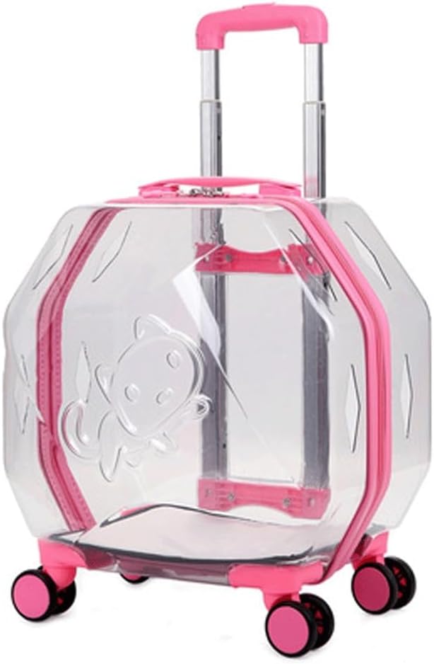 Pet Travel Trolley Backpack – Transparent Wheeled Dog & Cat Carrier Bag for Outdoor Travel, and Camping Use(White,Transparent,Brown)