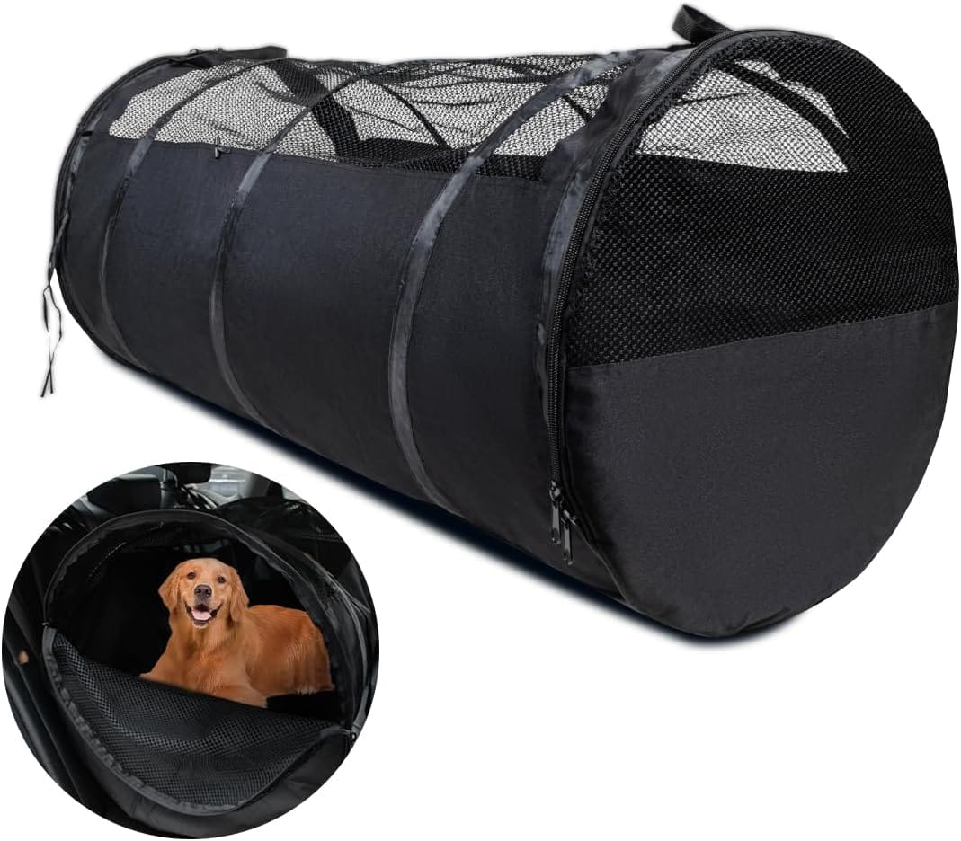 - 【Car Protection】 Reinforced soft oxford cloth sturdy and clean easily, not only to help protect your pets paws from scraping leather seats, but also the interior of your car will be protected from pet hair, mud, and dirt, travel dog crate keeps pet hair contained inside tube, Keeps car, truck or SUV seats clean & free of pet hair, making it perfect for messy forest hikes and outings on the beach.