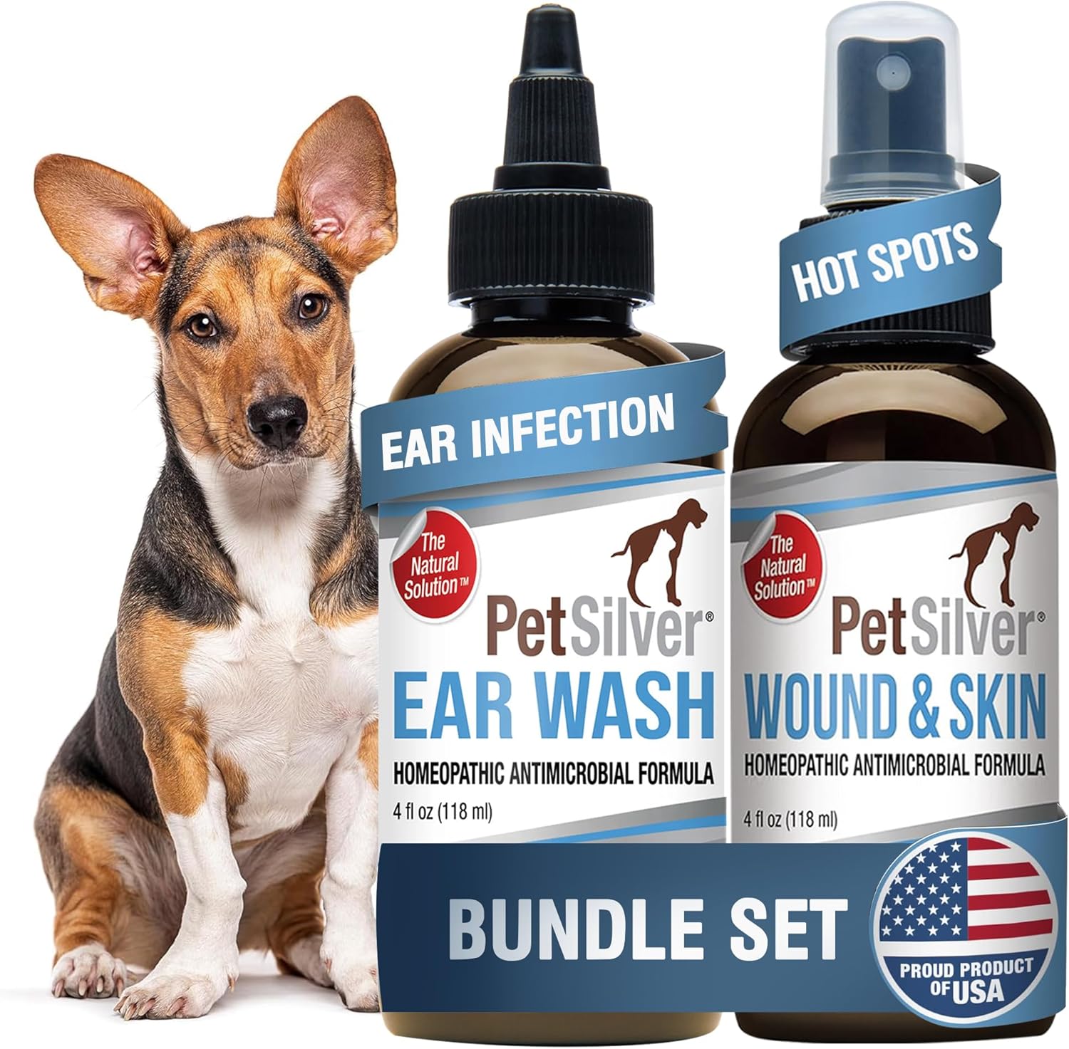 PetSilver – Wound & Skin Spray (4 fl oz) and Ear Wash (8 fl oz) with Patented Chelated Silver – Wound Care, Hot Spot, & Itch Relief Spray – Ear Cleaner & Treatment for Cats and Dogs – Made in USA