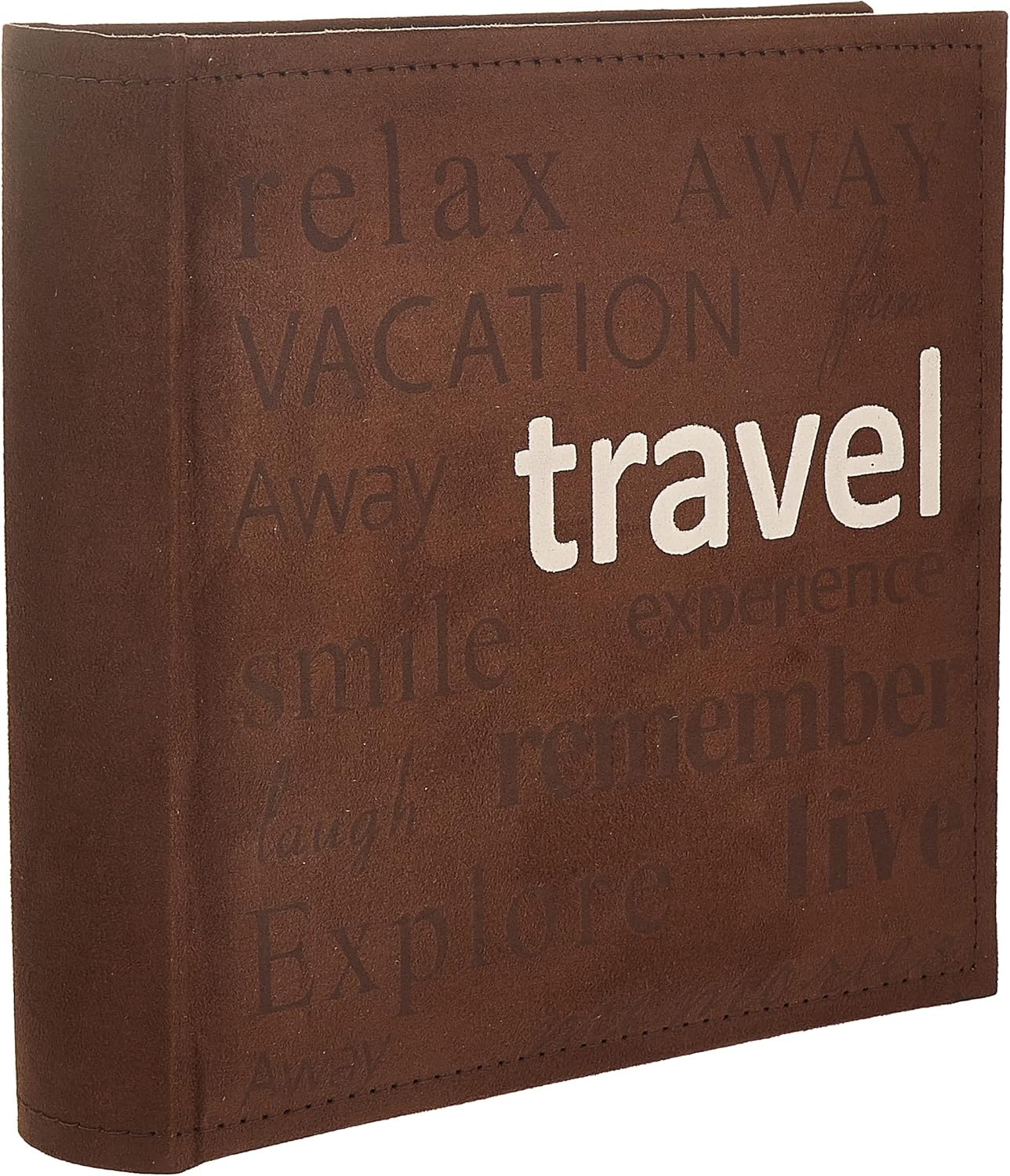 Pioneer Travel Text Design Sewn Faux Suede Cover Photo Album, Brown