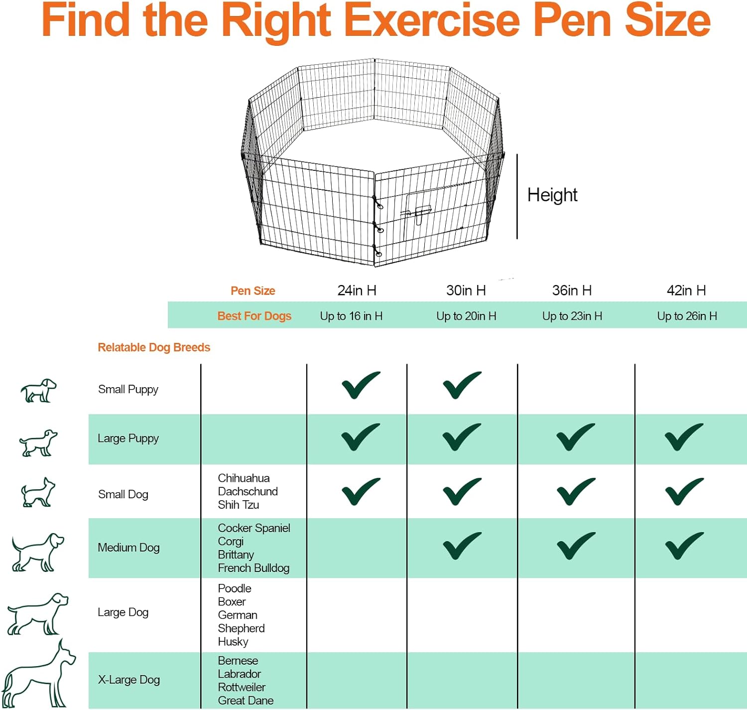 - 24H and 24W Foldable Pet Playpen: The sports dog fence has 8 connection panels (each panel is 24H and 24W inches), making it easy to set up and remove the puppy pet folding fence. It can be folded flat for easy storage and transportation. No installation tools required, quick installation in 5 minutes