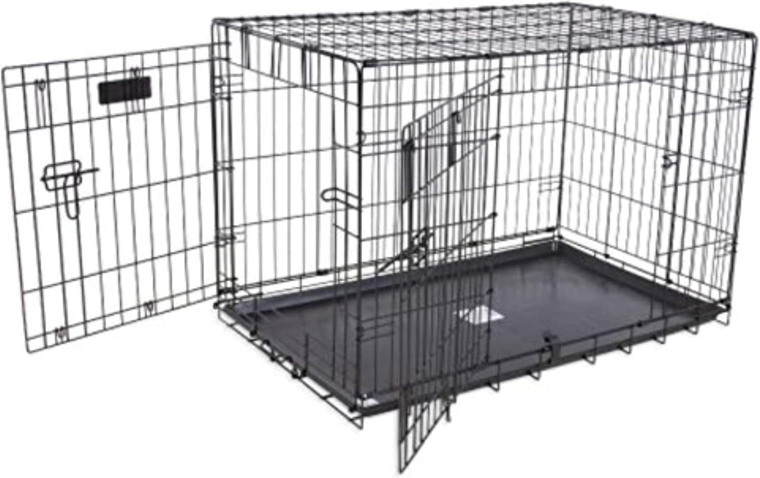 - Reliable, Standard Duty Wire Constuction: this dog crate for large dogs has a 5-point locking system that eliminates gaps & 2 doors for maximum security and access. Rust-resistant finish makes it suitable for occasional outdoor use
