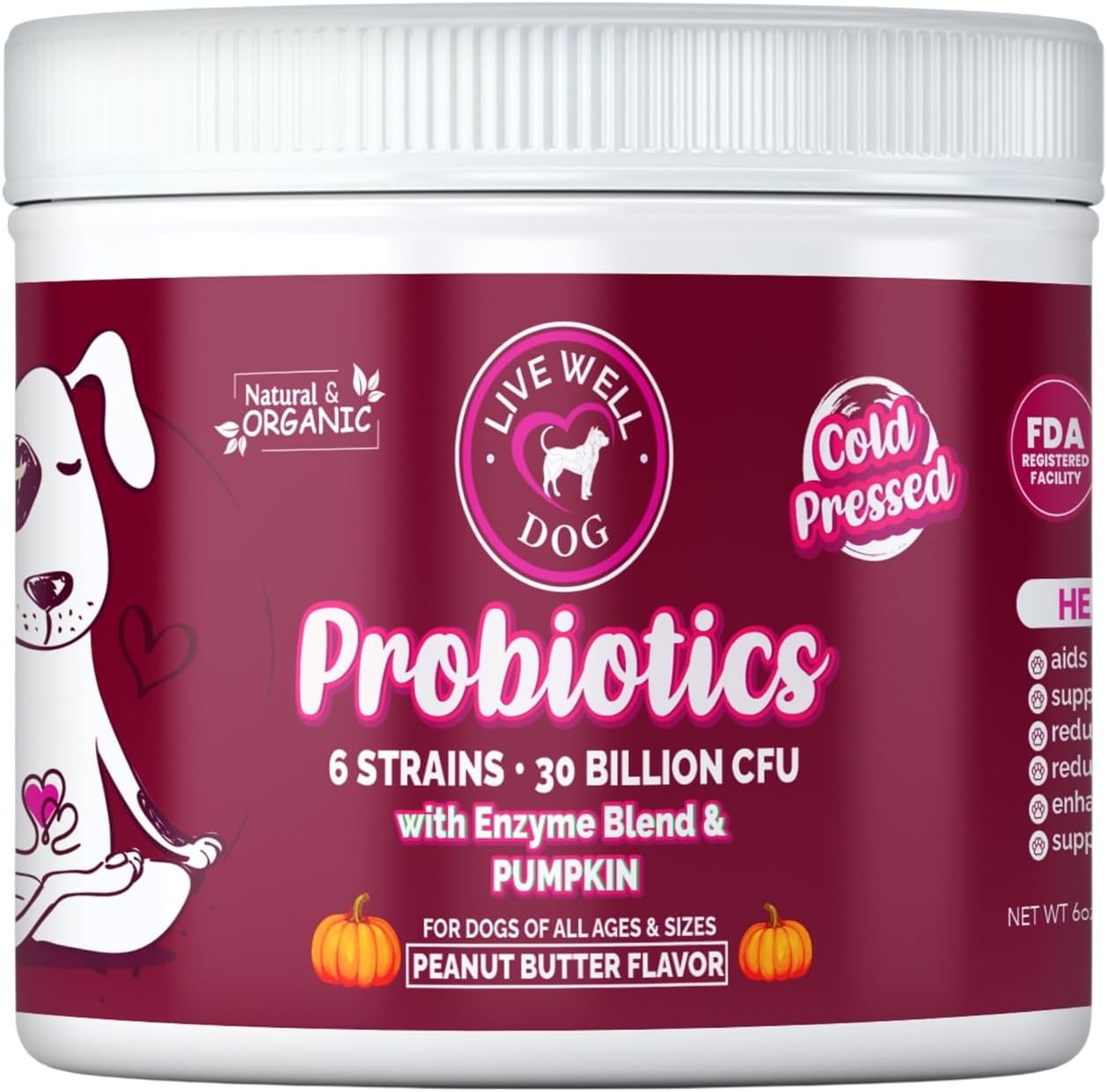 - Healthy Probiotic Support: Packed with 6 strains and 30 billion CFU of probiotics to promote digestive health and immune system function for dogs of all ages and sizes.