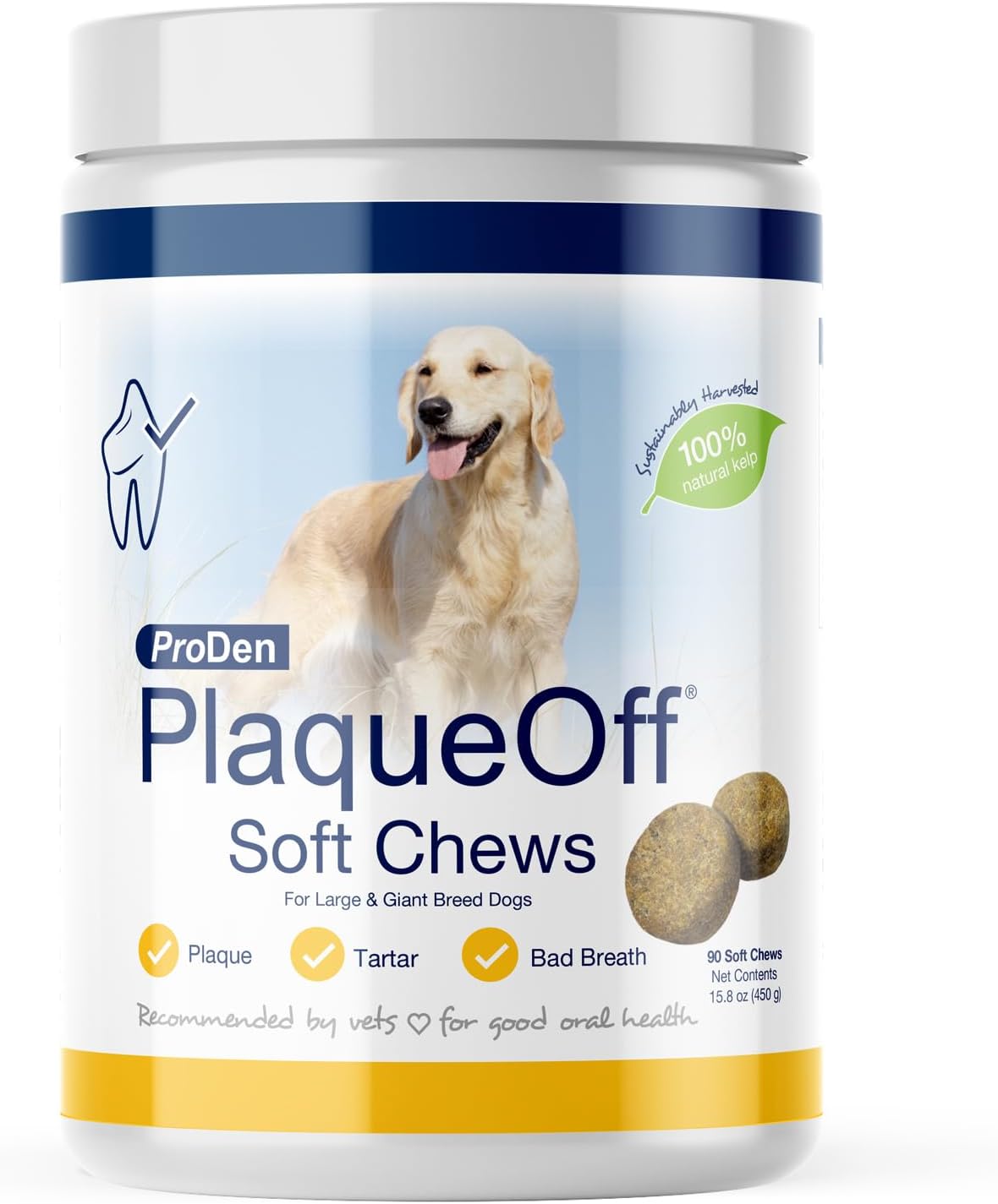 ProDen PlaqueOff Soft Chews with Natural Kelp – for Large & Giant Breed Dogs – Supports Normal, Healthy Teeth, Gums, and Breath Odor in Dogs – 90 Soft Chews