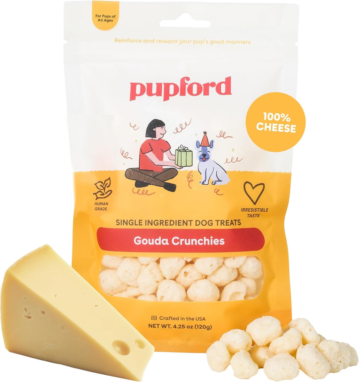 Pupford Cheese Crunchies, All-Natural, Healthy, Freeze Dried, Single-Ingredient Treat for Dogs & Puppies (Gouda, 7.50 oz)