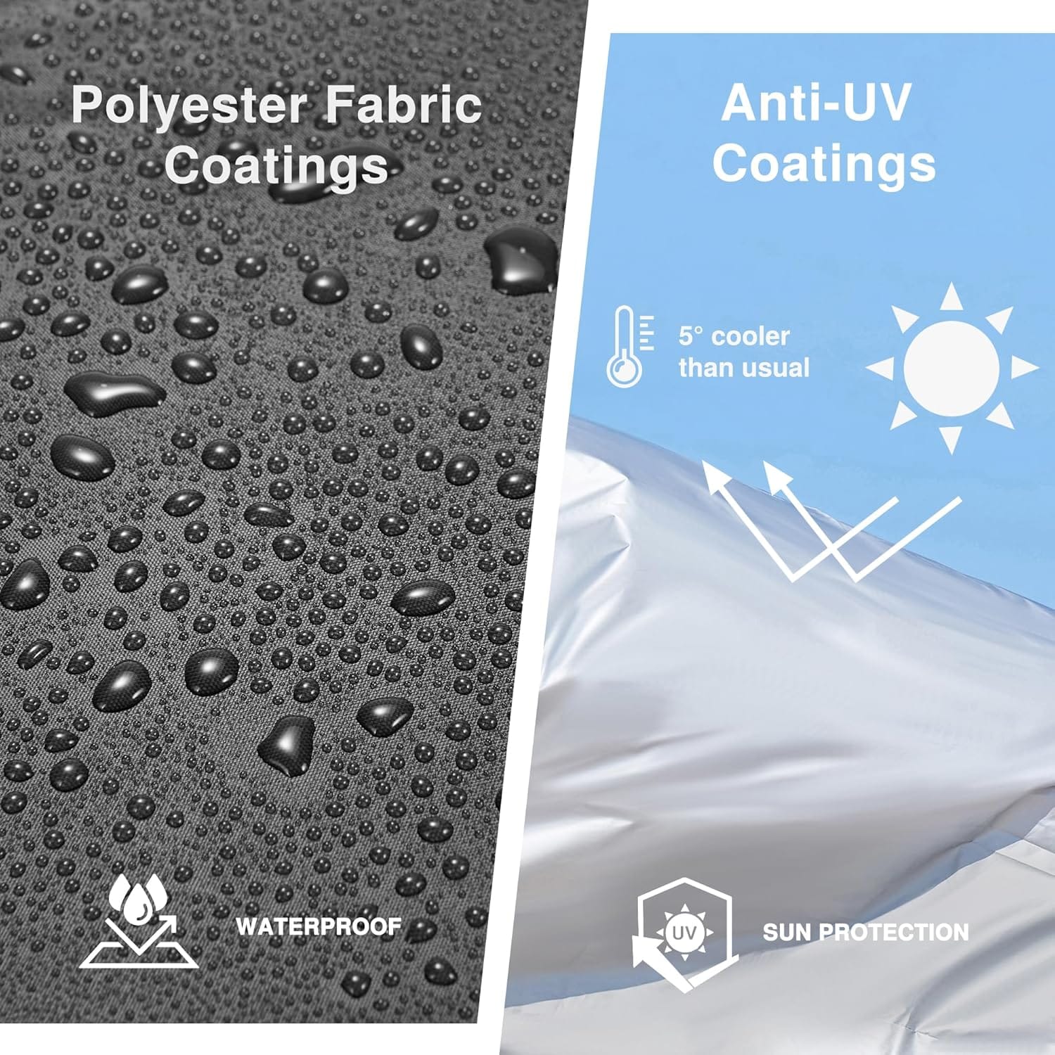 - Double-side Design: Our high-quality heavy-duty 4-wheeler cover provides an anti-UV coating to deliver absolute protection against UV and sun. PU coating has an outstanding waterproof performance, perfectly solves the problem of water seepage, and keeps your ATV dry in any weather.