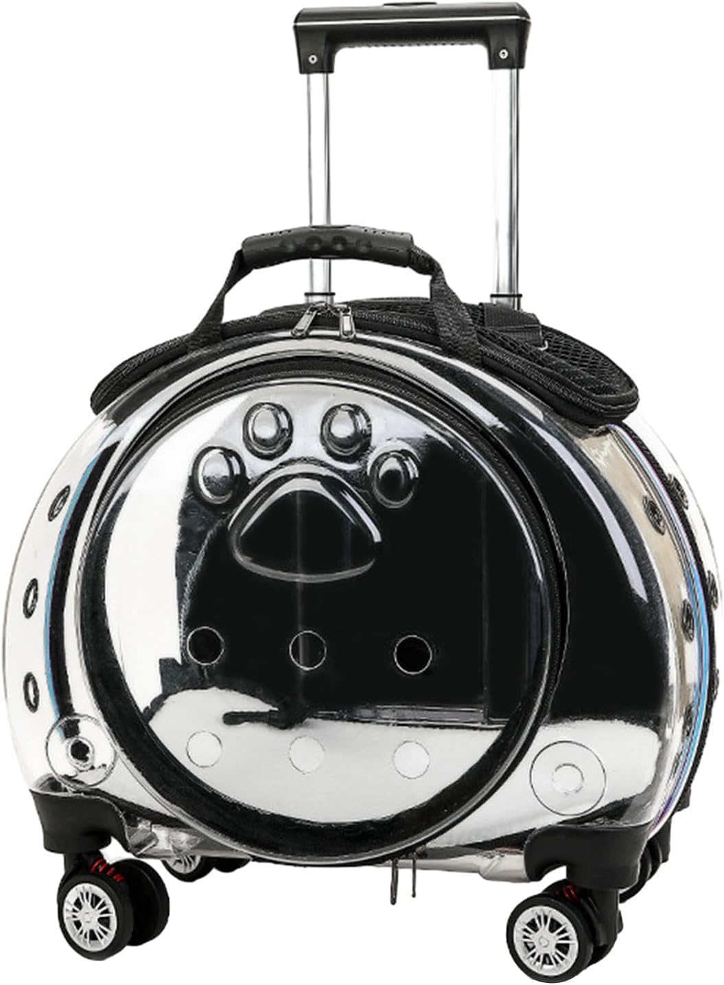 qorkhogr Portable Pet Trolley Case with Silent Wheels,Clear Ventilation Holes Cat Dog Carrier with Telescopic Handle,Perfect for Outdoor Adventures Black