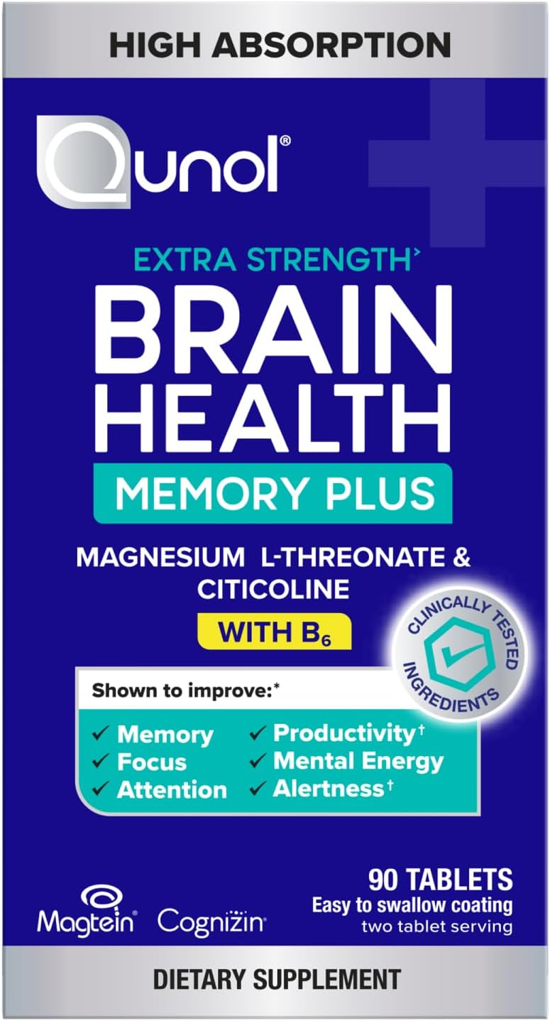 - IMPROVES MEMORY & COGNITIVE FUNCTION – Qunol Brain Health Memory Plus with B6 contains Citicoline to improve memory, Magnesium L-Threonate to improve productivity, and Vitamin B6 to help support a healthy nervous system.
