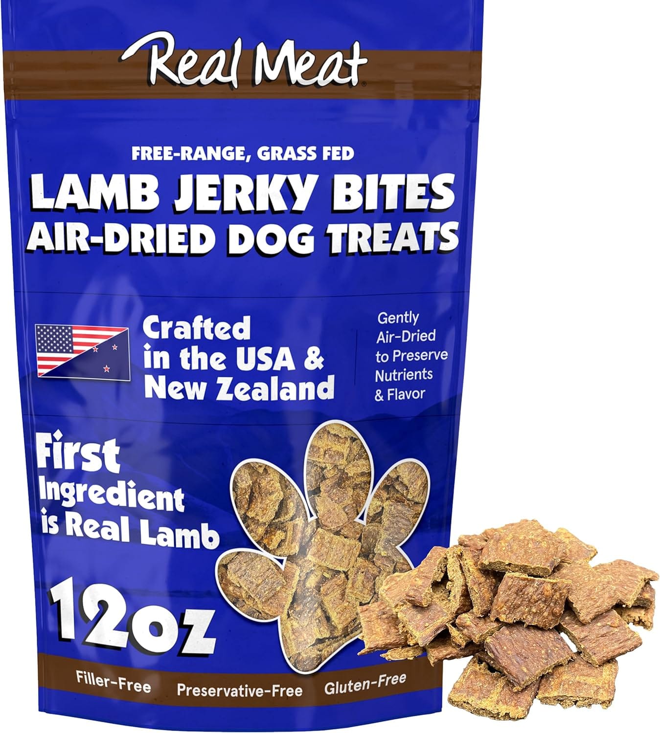 Real Meat Dog Treats – 12oz Bag of Bite-Sized Air-Dried Lamb Jerky for Dogs – Grain-Free Jerky Dog Treats, Free-Range, Grass Fed Lamb – All-Natural High Protein