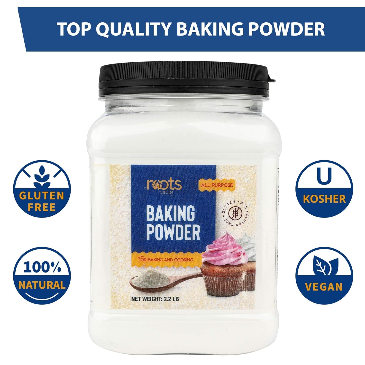 Roots Circle Baking Powder | Gluten-Free All-Purpose Leavening Agent For Cooking and Baked Goods, Desserts, Breads, & Cake | Vegan & Kosher-Safe | 2lb [35oz] Airtight Bulk Container