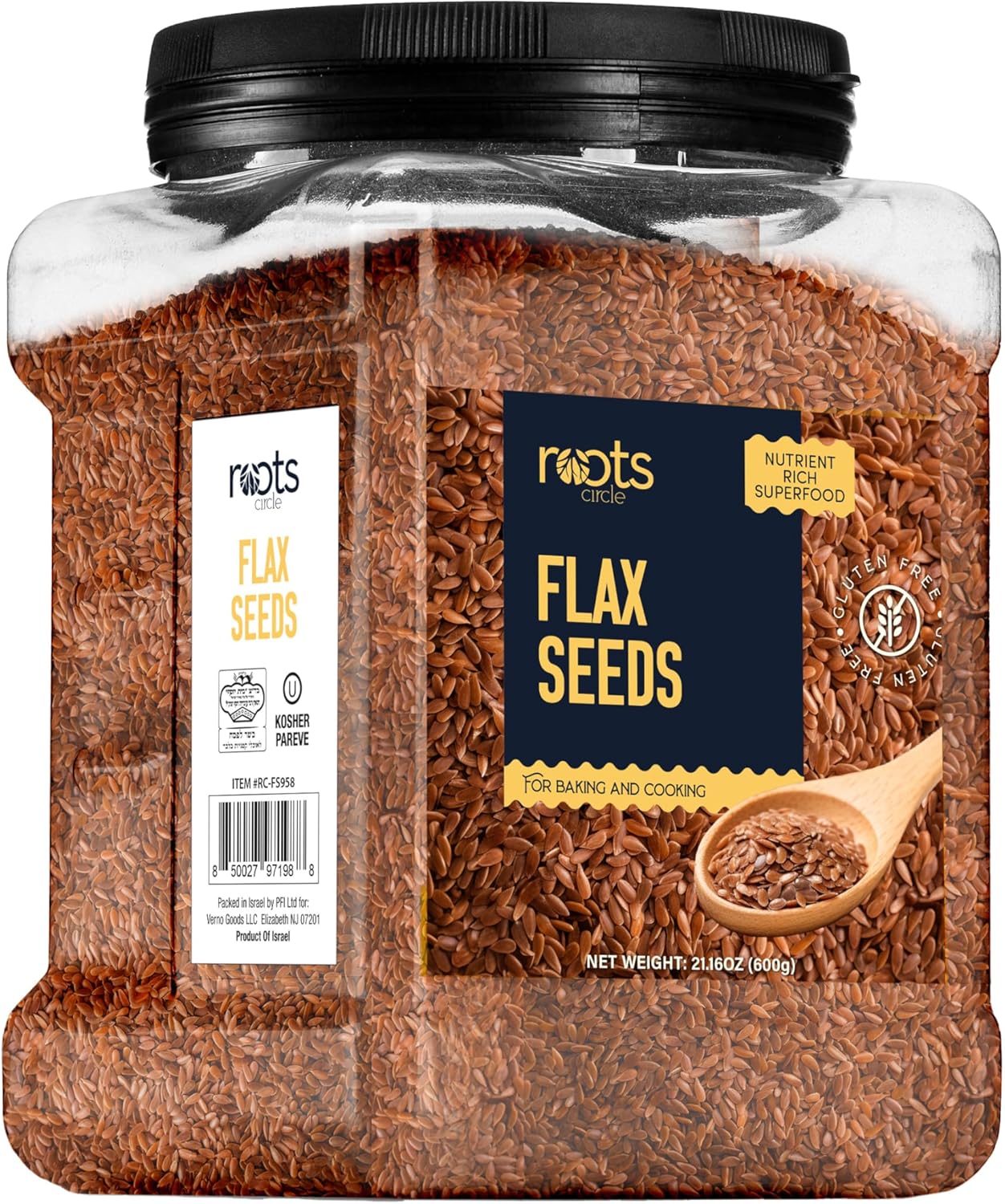 Roots Circle Premium Brown Whole Raw Flax Seeds – Rich in Fiber, Omega-3 Fatty Acids | Great for Baking, Salads, Smoothies & Protein Balls | Premium Flaxseeds | Kosher Bulk 1 Pack of 21oz