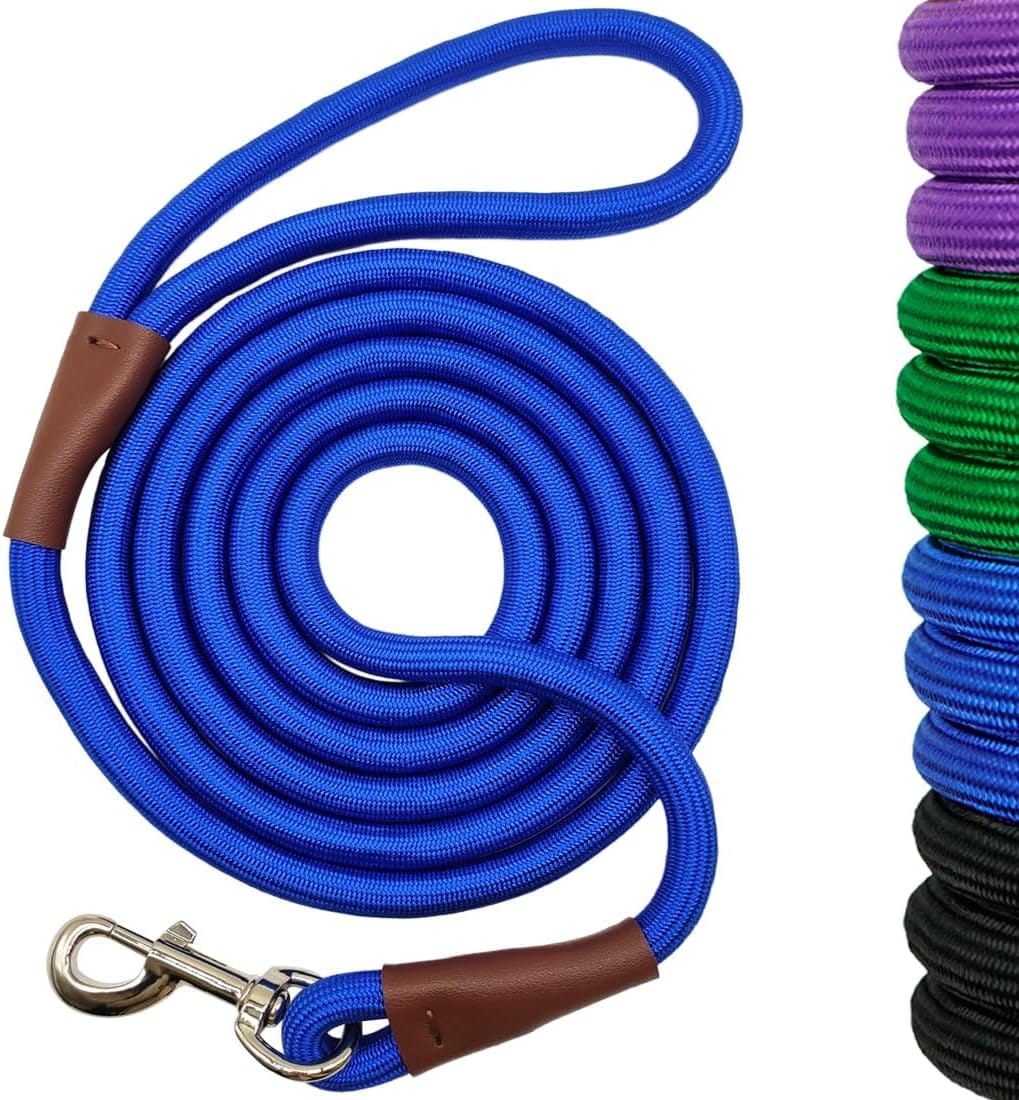 Rope Dog Leash 6/8/10 FT, Classic Leash 1/2 Strong Nylon Rope Lead for Medium and Large Dogs Outdoor Walking Training Exploring (1/2″ x 8 ft, Dark Blue)