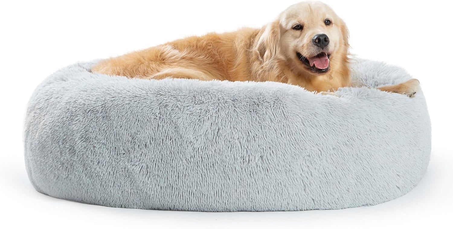 SAVFOX Plush Calming Dog Beds, Donut Dog Bed for Small Dogs, Medium, Large & X-Large, Comfy Cuddler Dog Bed and Cat Bed in Faux Fur, Washable Dog Bed, Multiple Sizes S-XXL