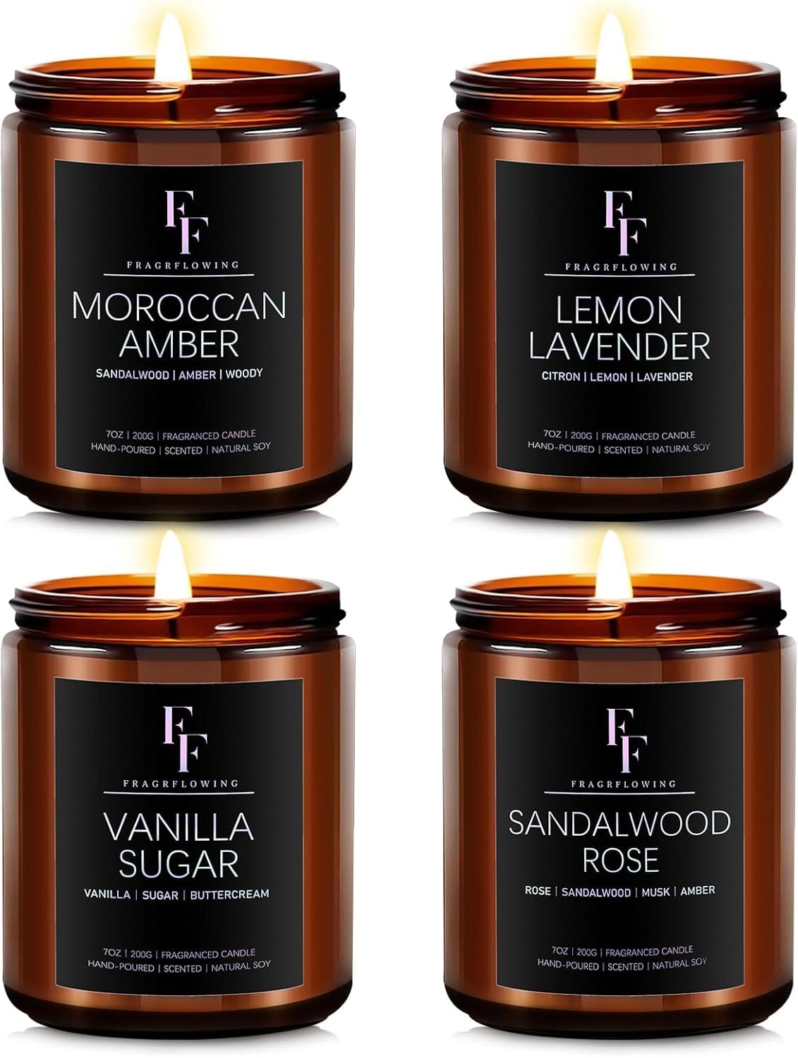 - Candle Set: We have carefully blended 4 different fragrance types, from soft rose flavor to warm amber flavor, from fresh lemo flavor to rich vanilla flavor. Whether you like the natural atmosphere or the personalized flavour, this candle pack can meet your needs. Each candles is a unique fragrance combination that brings you a comprehensive enjoyment of body and mind.