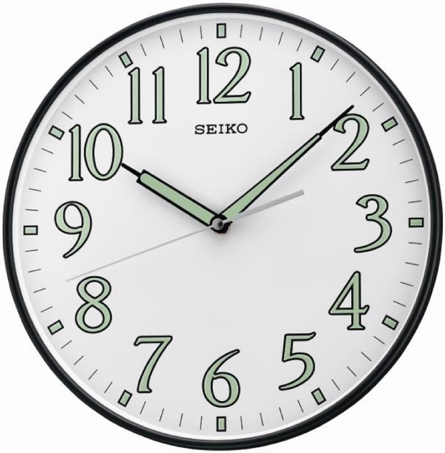 SEIKO 12 Inch Black Framed Luminous Numbered Wall Clock