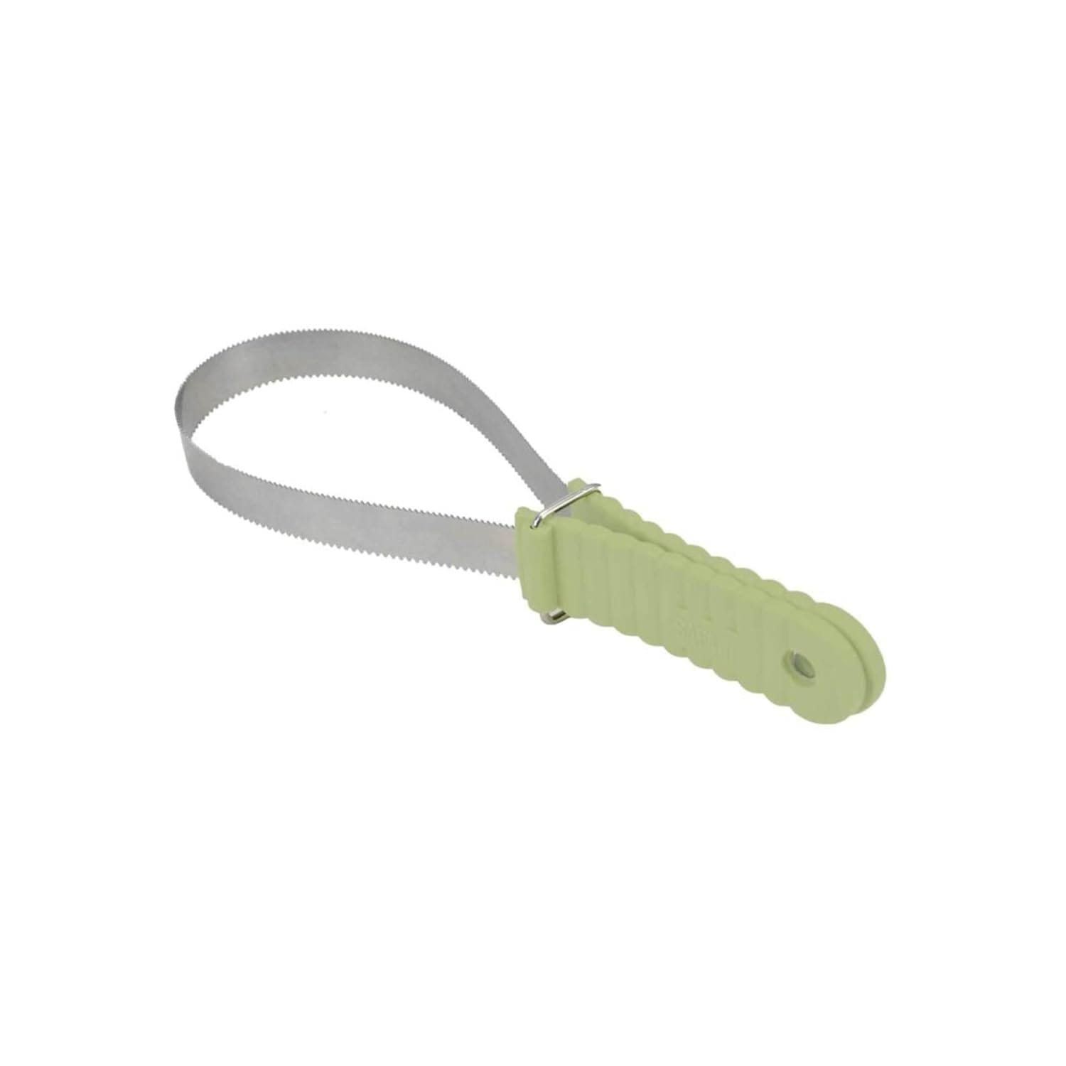 - Ridged stainless steel blade efficiently sheds even the thickest coats.