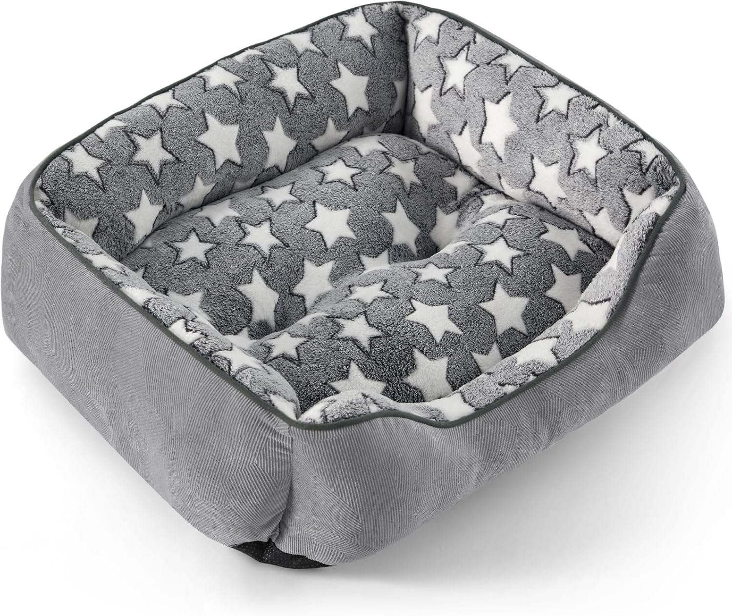 - Soft Fluffy Dog Bed: This medium dog bed boasts a star pattern design inside, balancing both practicality and aesthetics. Crafted with soft, stain-resistant suede exterior and cozy lamb fleece interior, it keeps your pet warm and comfortable in winter it filled with eco-friendly PP fiber, it offers a breathable and cozy sleeping space.