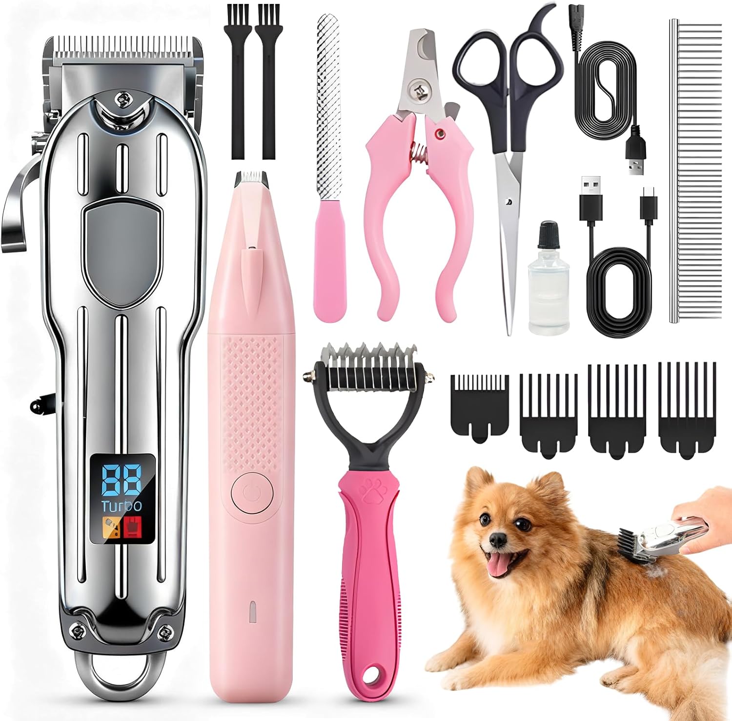 SKEFOLI Dog Grooming Kit with Dog Clippers Rechargeable Wireless Grooming Clippers, Pet Trimmer for Thick Fur, Stainless Steel Blades & Nail Trimmer