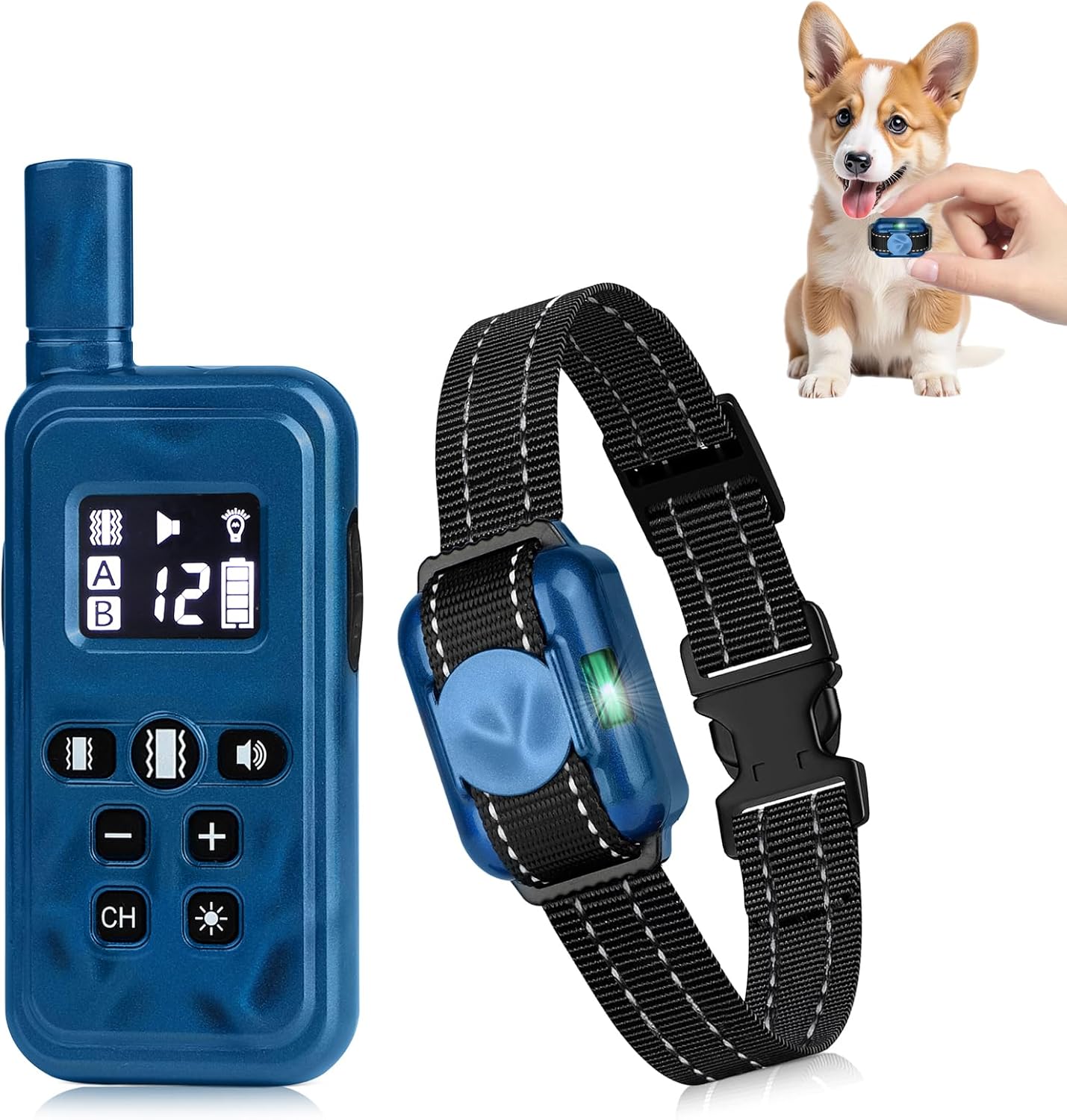- 【2000Ft Control Range & Dual Channel】This no shock dog training collar boasts an impressive 660-yard control range, letting you trigger the collar’s beep from inside your home to stop excessive barking—even when your dog is in the yard, shouting or chasing strangers or vehicles. The remote also comes with a dual-channel design, supporting simultaneous training of 2 dogs with ease.