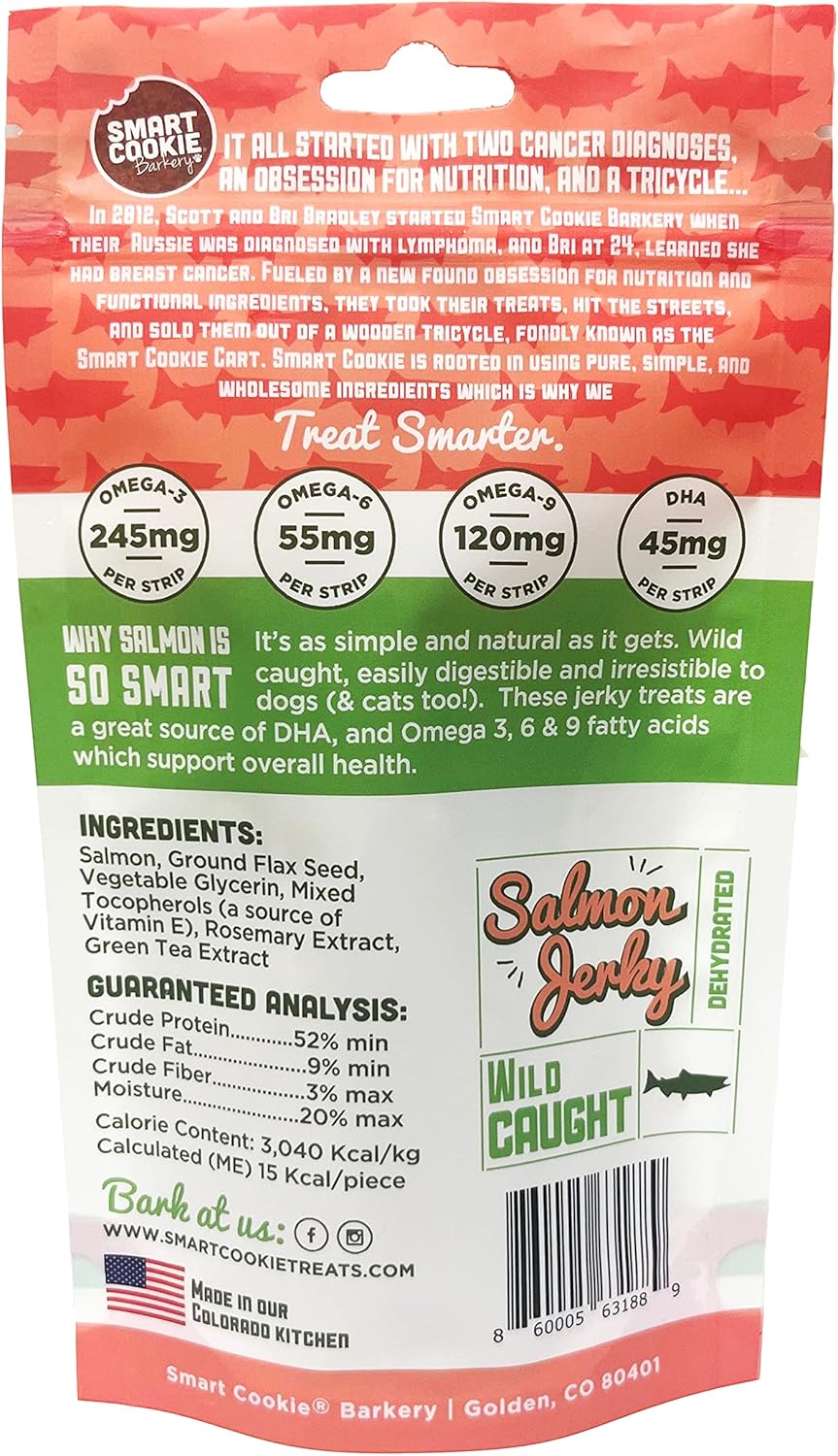 Smart Cookie Salmon Jerky Dog Treats – DHA & Omega Strips for Dogs & Puppies with Allergies, Sensitive Stomachs with Wild Caught Alaskan Salmon- Dehydrated, Grain Free, Made in USA – 3oz Bag Pack of 1
