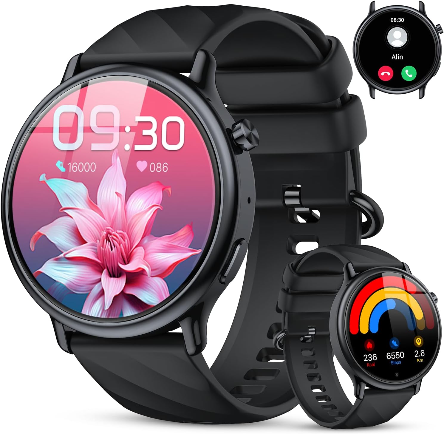 - 1.32″ AMOLED Touchscreen: Stylish and functional, This smartwatch is designed for women who prioritize both fashion and fitness. Lightweight and comfortable for all-day wear.Smart watch for iphone compatible is equipped with a 1.32”AMOLED color screen, delivering superior image quality and touch sensitivity.Smart watch for android phones has more than 200 watch face styles to choose from, and you can also upload photos to customize your unique watch face