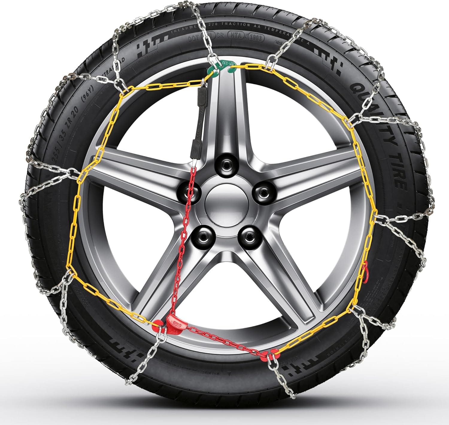 Snow Chains, Wear-Resistant High Carbon Steel Anti Slip Tire Chain for Passenger Cars, Pickups, and SUVs, Set of 2 (KN130)