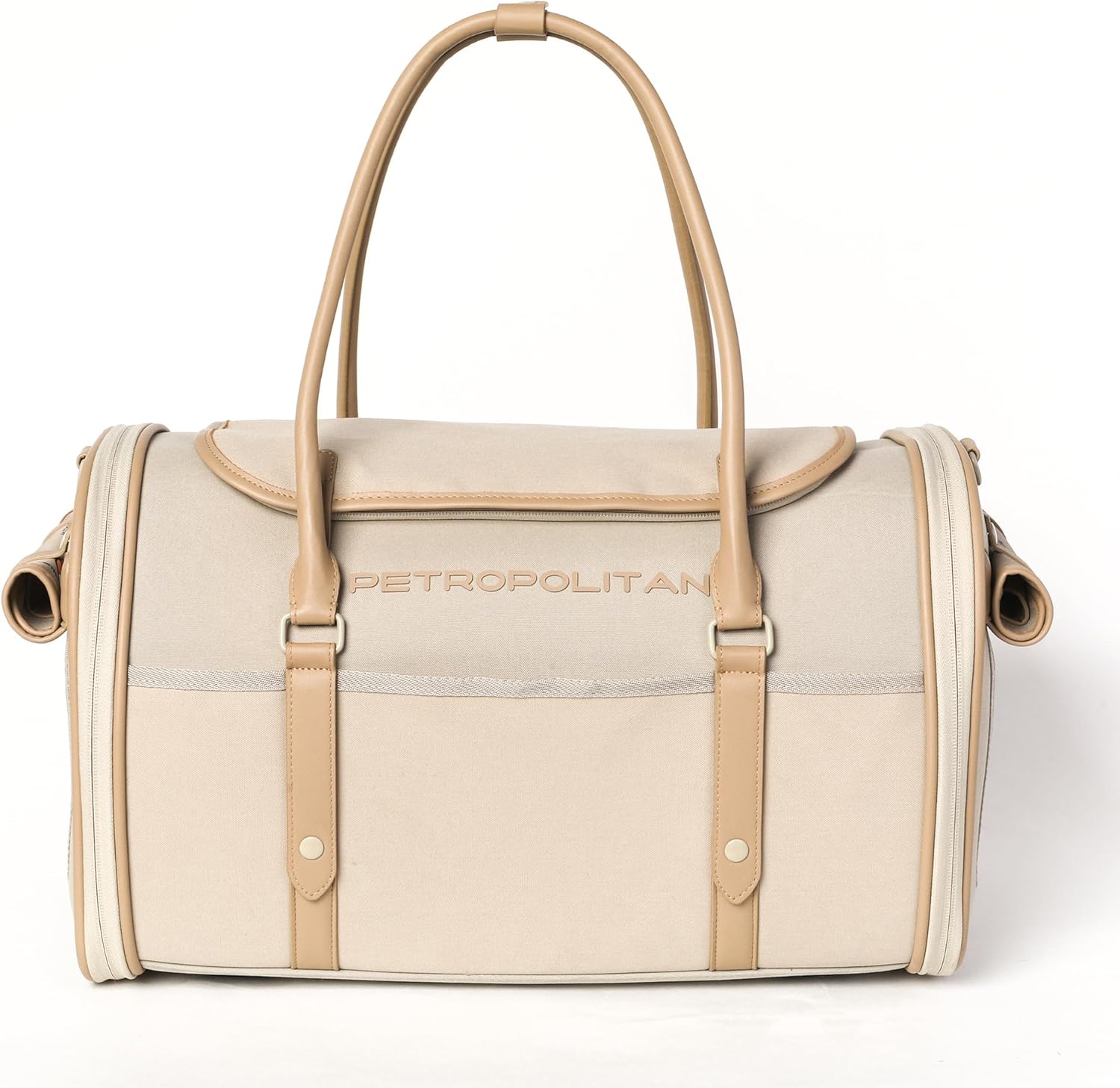 - HIGH-QUALITY MATERIALS & HARDWARE: High-quality faux leather dual handles and accents for grip and durability; a handle connector/wrap to join the handles for comfort; an adjustable, removable shoulder strap in tough webbing with reinforced hardware; and YKK self-locking zippers for smooth operation that won’t creep open – plus a fluorescent safety leash to keep pets secure.