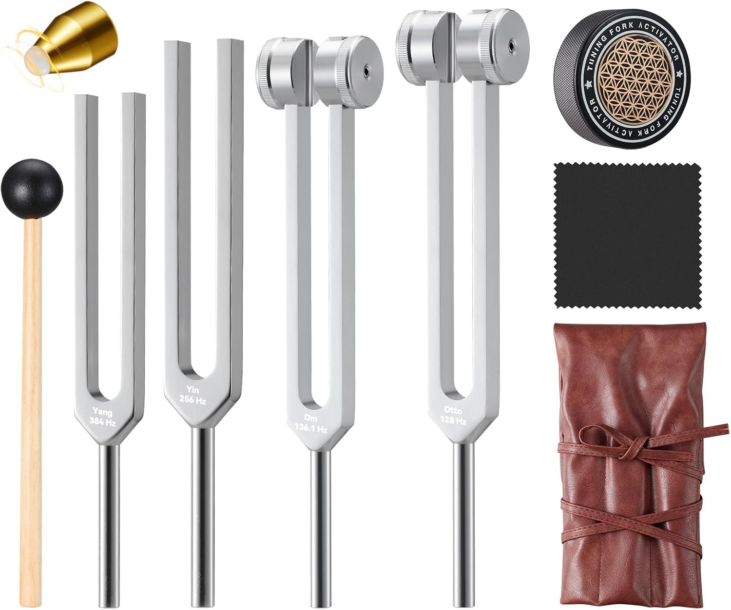 - CHAKRA & EMOTIONAL HEALING: This tuning forks for healing set is designed to balance your energy and enhance mental clarity. Frequencies like Otto 128Hz, Earth Om 136.1Hz, Yin 256Hz, and Yang 384Hz are ideal for chakra alignment, emotional regulation, and promoting inner peace and emotional well-being.