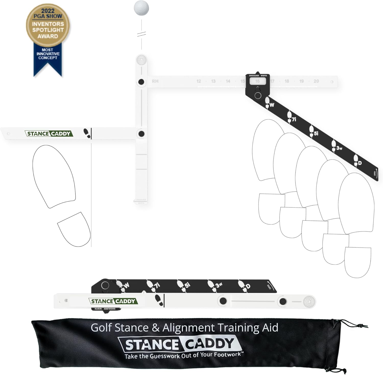 - COMPACT AND PORTABLE – The Stance Caddy is the ultimate portable golf training aid, perfect for practice at home or on the driving range. Its lightweight, compact design allows it to fit easily in your bag, enabling you to quickly set up and maintain ideal alignment and stance wherever your game takes you.