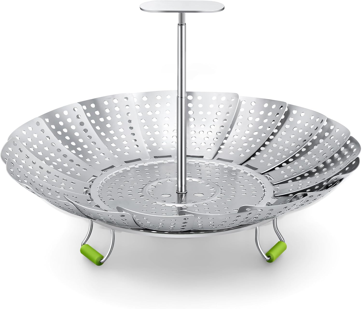 • 【IMPROVED EXTENDABLE HANDLE】Say goodbye to cumbersome assembly with our easy-to-set-up handle. No screwdriver needed! The lift handle of our stainless steel steamer basket for pot extends from 3.2 to 6.6 inches, allowing for easy access and insertion into deep pots. The T-shaped design protects hands from hot steam, making steaming safer and more convenient. Plus, the removable handle accommodates large food items with ease.