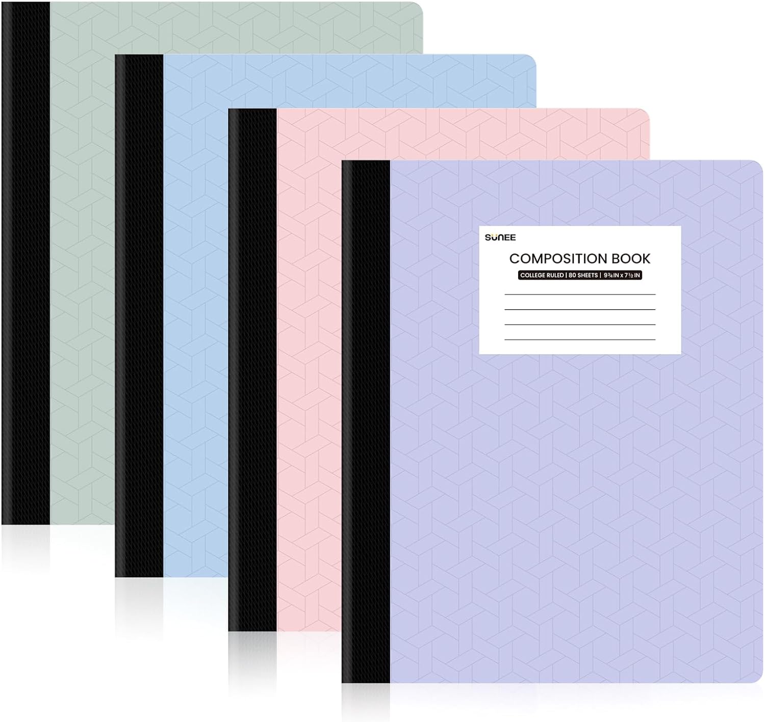 SUNEE Composition Notebooks – College Ruled Paper, 4 Pack Composition Book, 9 3/4″ x 7 1/2″, 80 Sheets/160 Pages, Assorted Colors, School, College & Office Supplies