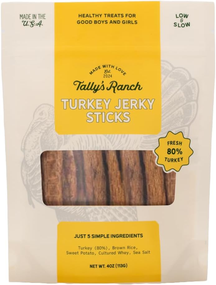 Tally’s Ranch Turkey Jerky Dog Treats | High Protein, 80% Turkey, All Natural, 5 Simple Ingredients, No Added Sugar | Healthy Treats for Dogs | Made in The USA, 4 oz Bag
