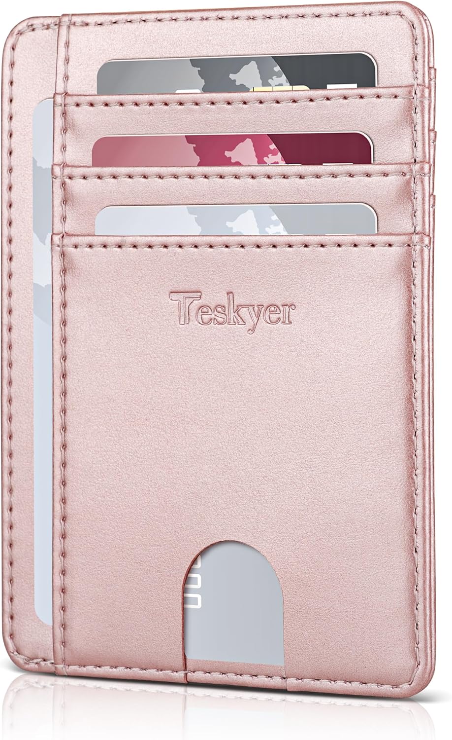 - Advanced RFID Blocking Technology: The Teskyer slim card holder wallet utilizes the advanced RFID blocking technology to protect your bank card and driver’s license information from being read. Keep your identity and property safe while traveling or shopping