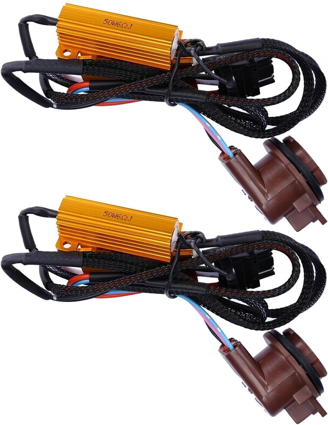 Teybouk 2 PCS Car Light Bulb Relay Harness Adapter, Vehicle Lighting System Anti-flicker Error Decoder, T20 3157 3157A 4157 50W Load Resistor Kit, Universal for Most Vehicles (Multicolored)