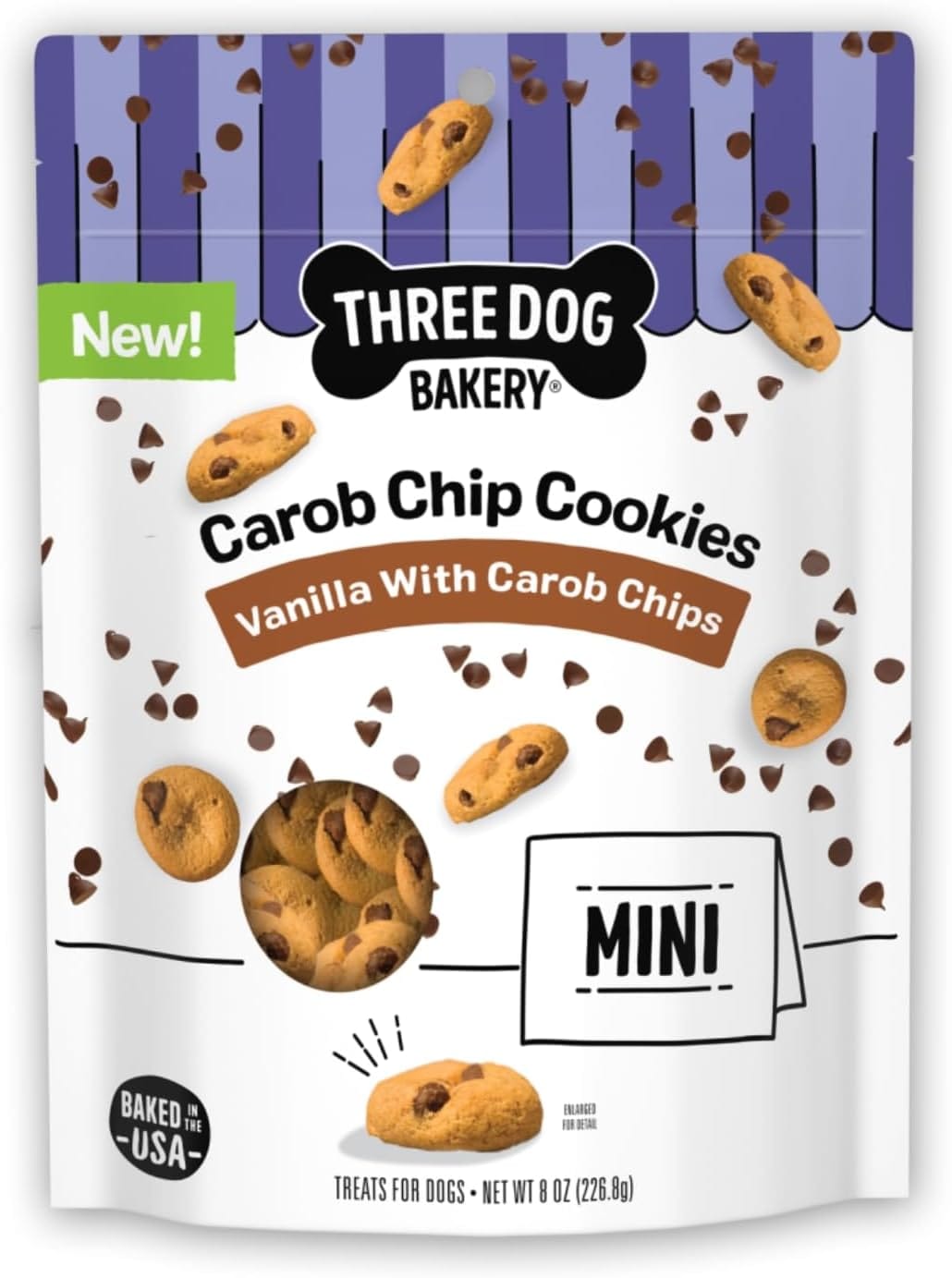 Three Dog Bakery Mini Carob Chip Cookies for Dogs, Crunchy Dog Treats with Real Ingredients, 8 oz