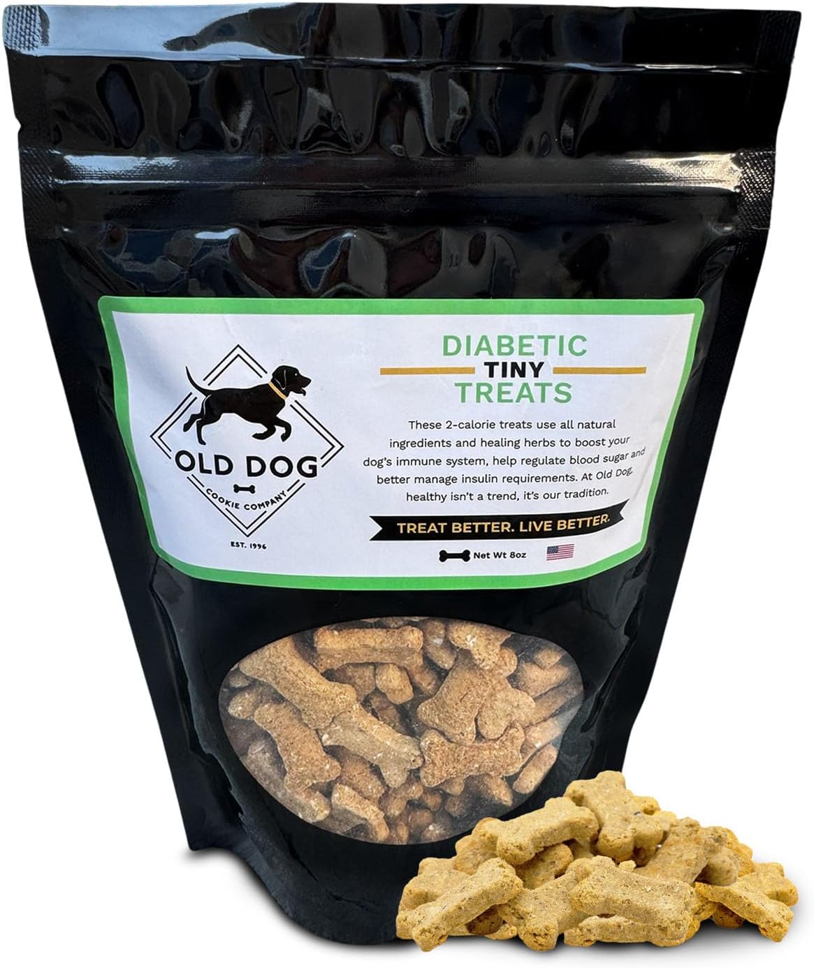 - First Ever Diabetic-Friendly & All-Natural Formula for Healthy Snacking: Old Dog Cookie Company was the first to offer diabetic senior dog treats and dogs of all ages, made with natural ingredients to help regulate blood sugar and support overall wellness. Each bite-sized cookie is just 2 calories—perfect low calorie dog treats for weight management. These treats for dogs deliver the flavor dogs crave while offering truly healthy dog treats you can feel good about.