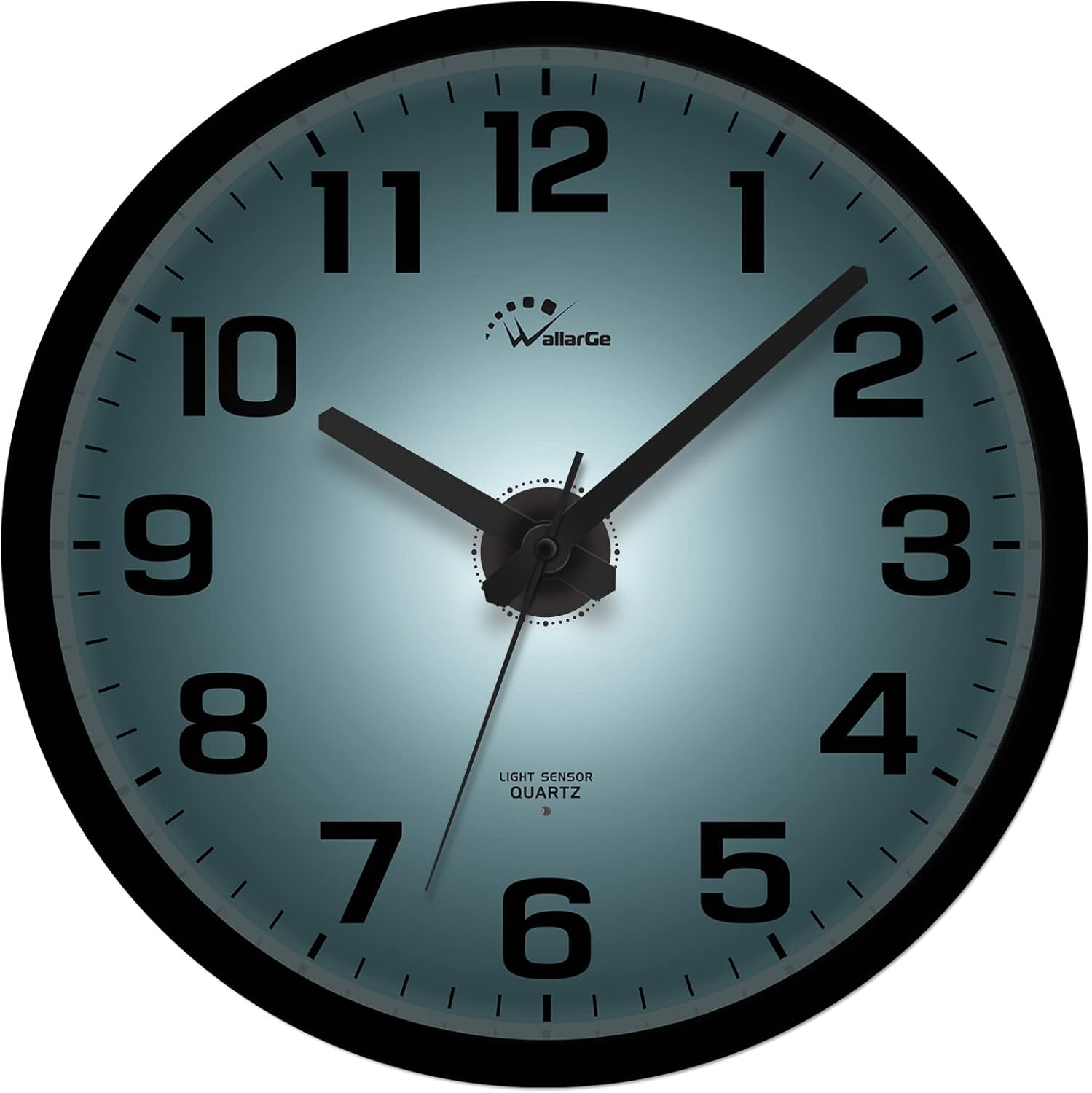 WallarGe Night Light Wall Clock for Bedroom – Silent Lighted up Wall Clock Glow in The Dark, Battery Operated for Living Room/Kitchen, Easy to Read Large Digital Display, 12 Inch