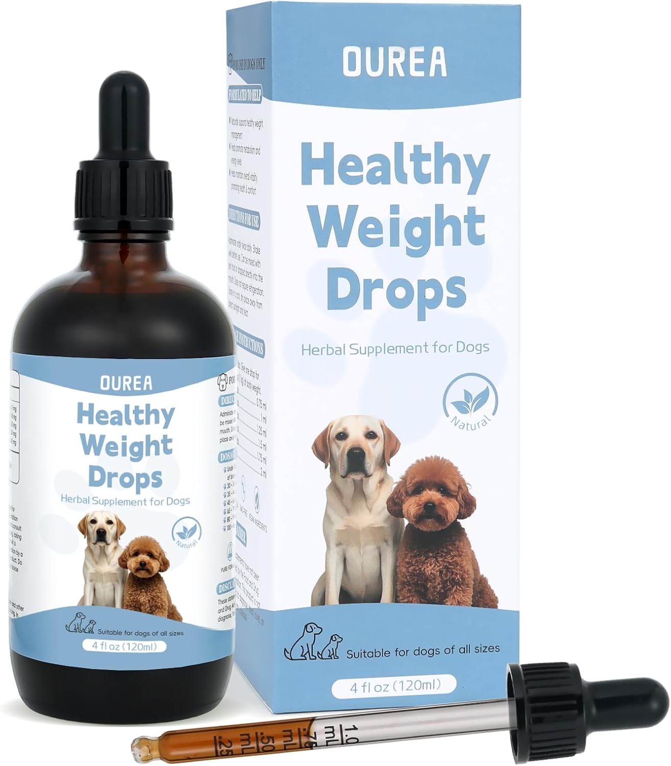 - Natural Herbal Safe Ingredients: This dog weights management drop is made with 100% natural plant-based ingredients and contains no artificial flavors, preservatives, colors, alcohol, or gluten. It’s safe for daily use and suitable for dogs of all breeds and sizes. Gentle and non-irritating, the weight management dog food is ideal for ongoing wellness routines, especially for dogs prone to weight gain or slow metabolism.