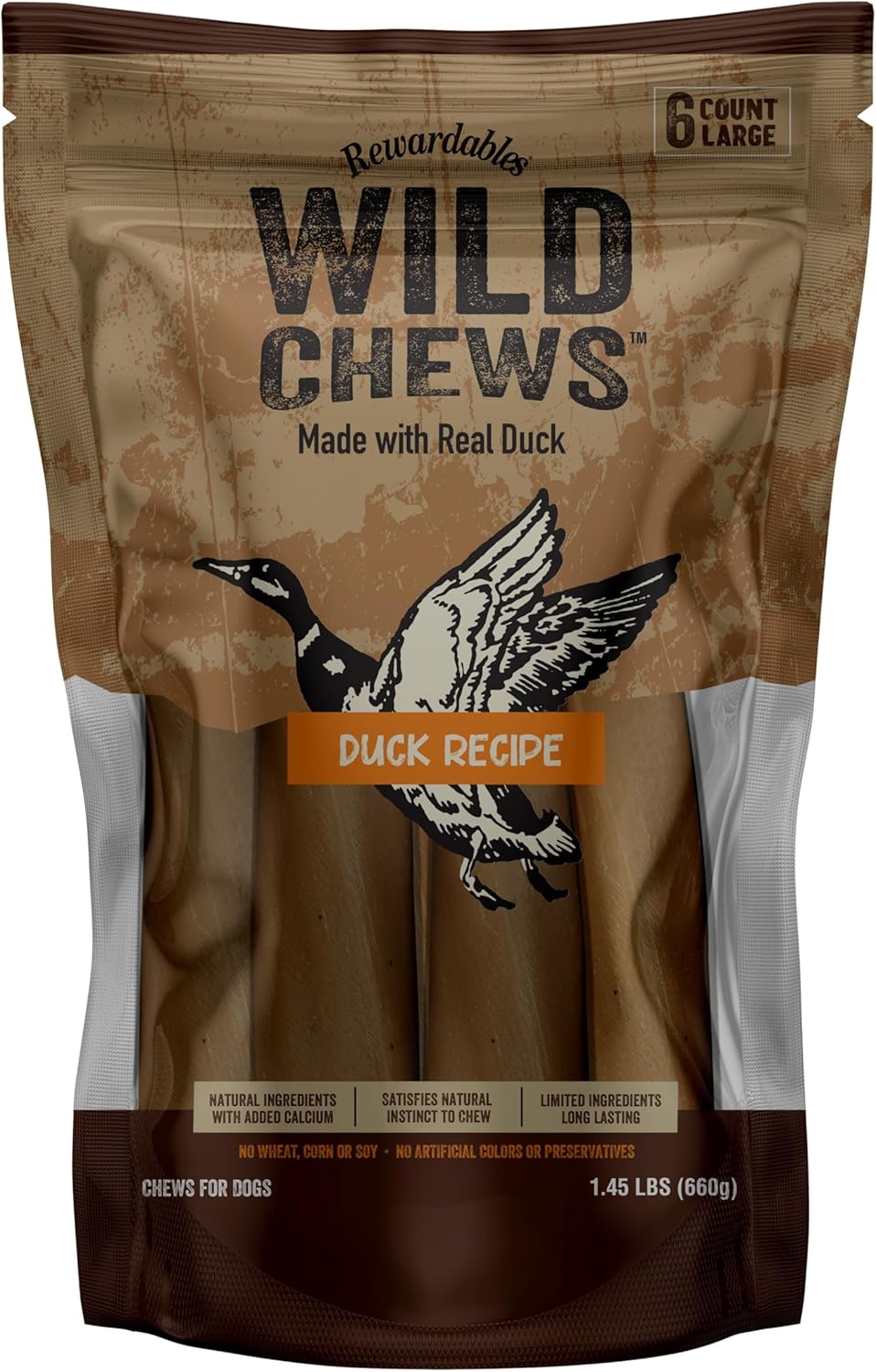 | Wild Chews | Duck Recipe, Made with Real Duck, Limited Ingredient, Long Lasting Chews for Large Dogs | 6 Count