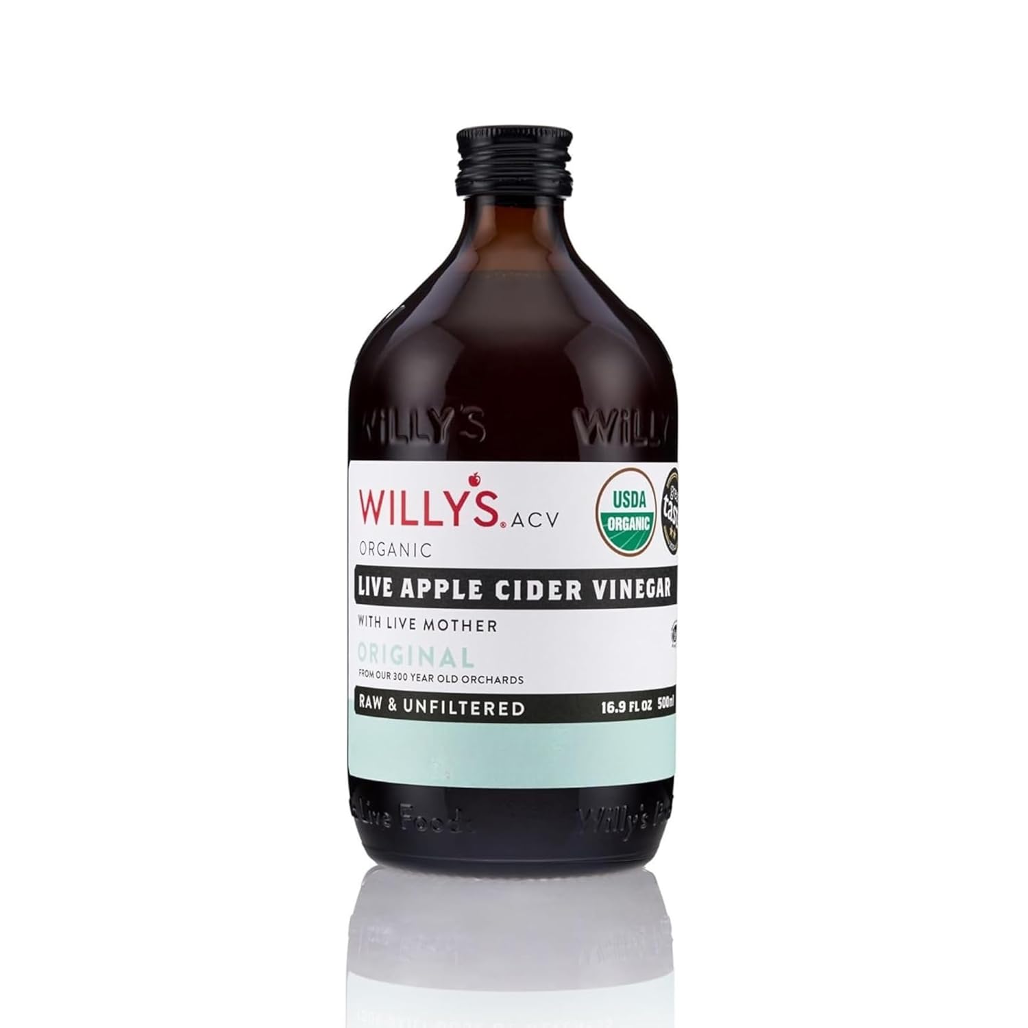 Willy’s Organic Apple Cider Vinegar with Live Mother. Probotics for Detox and Gut Health.
