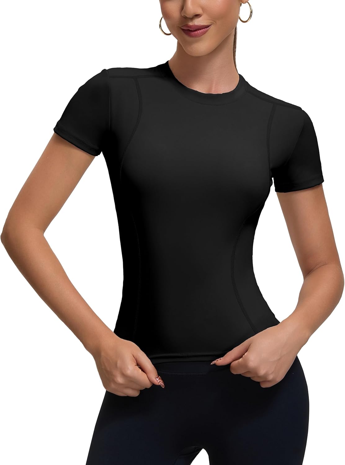 Womens Workout Compression Shirts,Athletic Dry Fit Yoga Gym Pilates Shapewear Tops,Cute Crop Y2K Short Sleeve Clothes