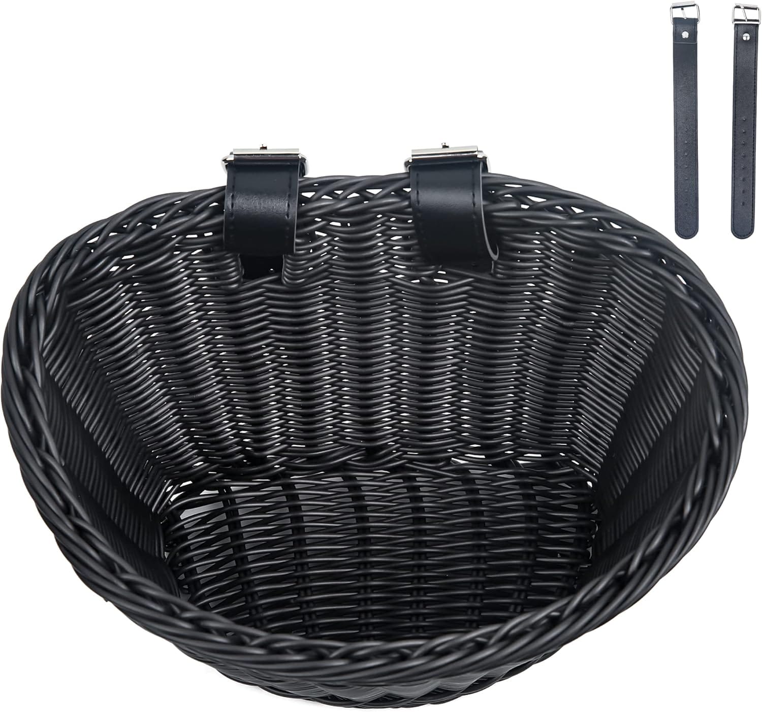 Woven Plastic Bike Baskets- Front D-Shaped Bike Bicycle Basket | Handlebar Storage Container with 2 Adjustable Leather Straps